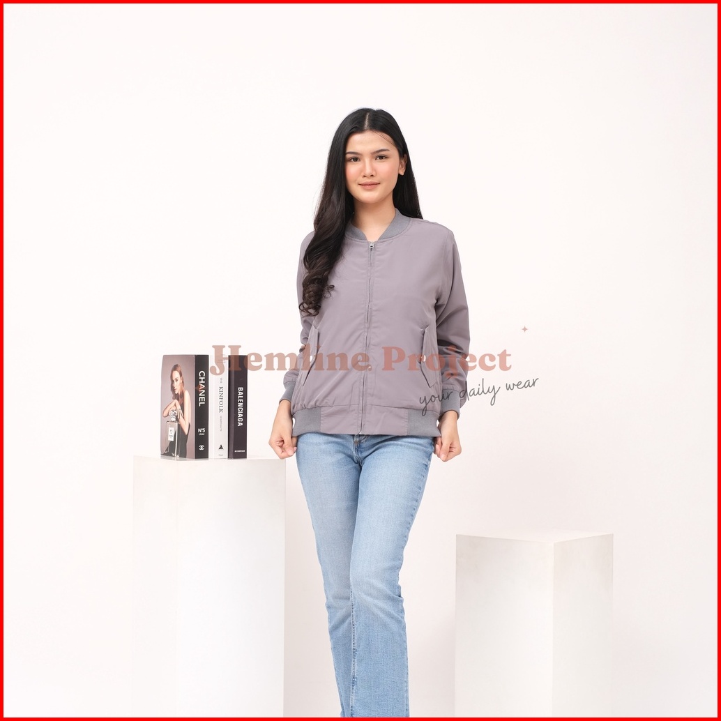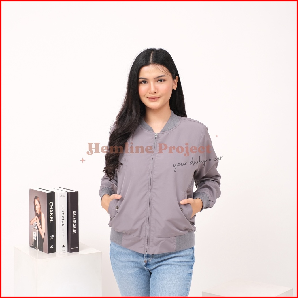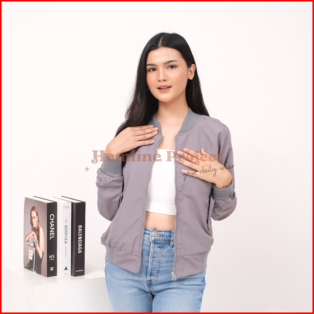 Gania Bomber Jaket Grey - Jaket Parasut Wanita