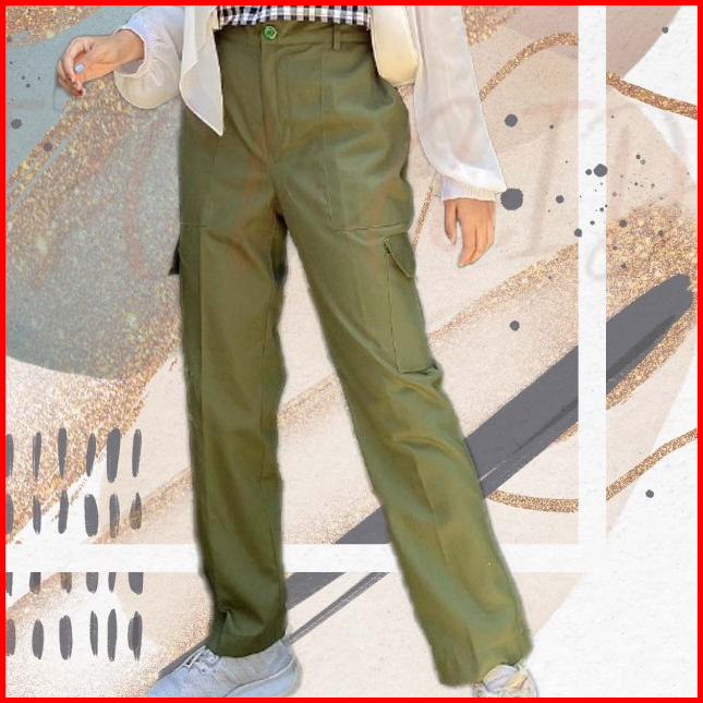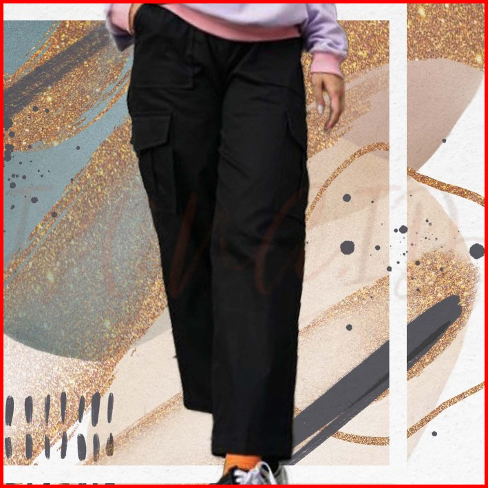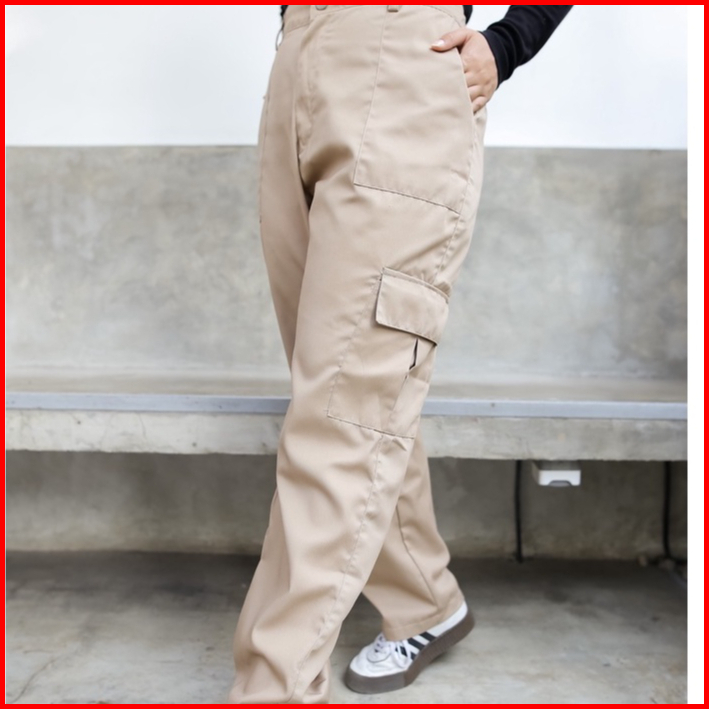 Stacie Pants Pokect Celana Cargo Wanita Pria Unisex Coksu Black Army Purple White Cargo Haiclo Chino