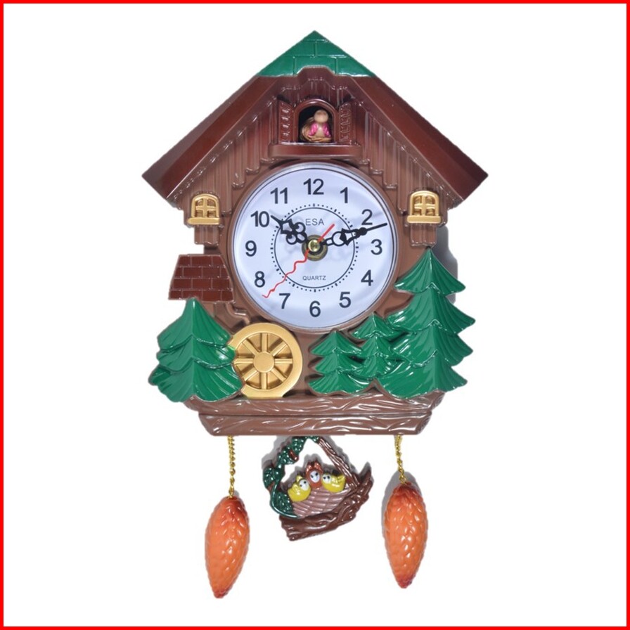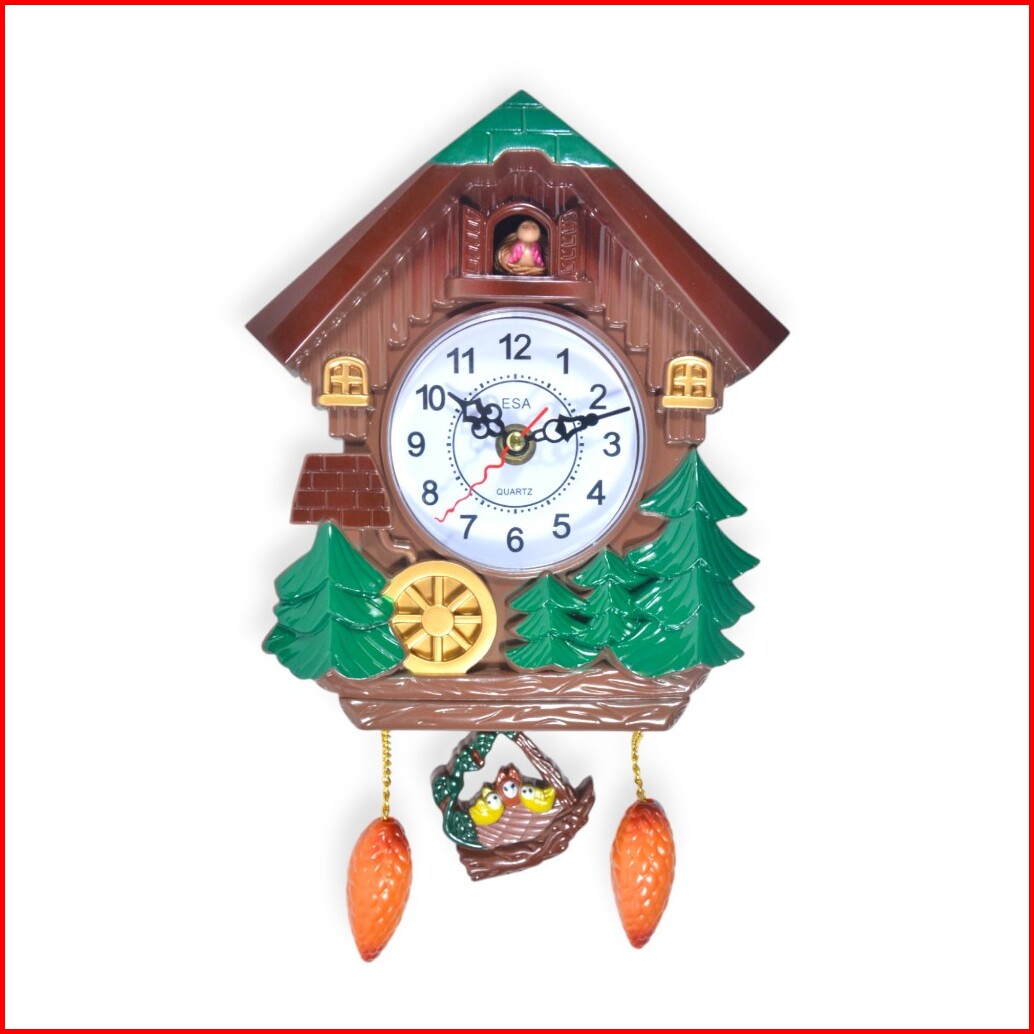 Jam Dinding Bandul Model Cuckoo Kikuk 21 Cm Warna Coklat Free Baterai