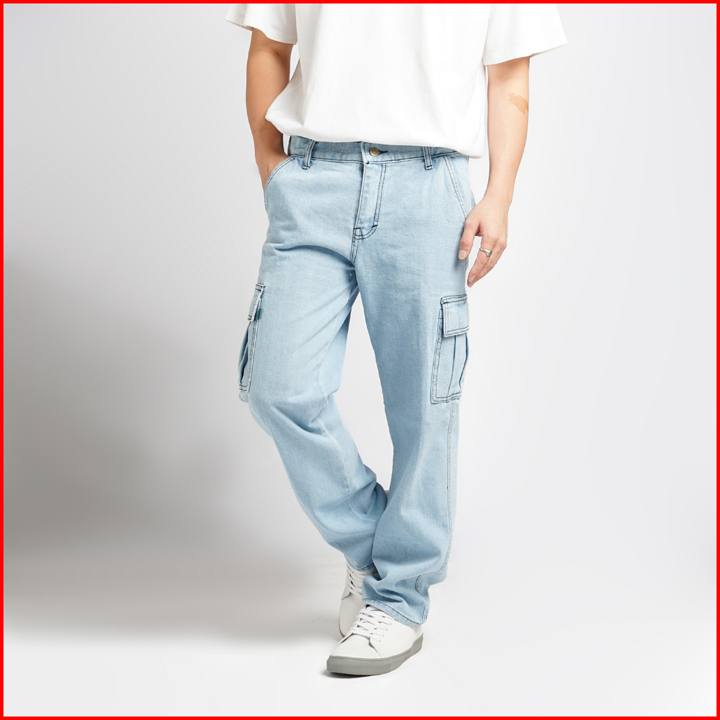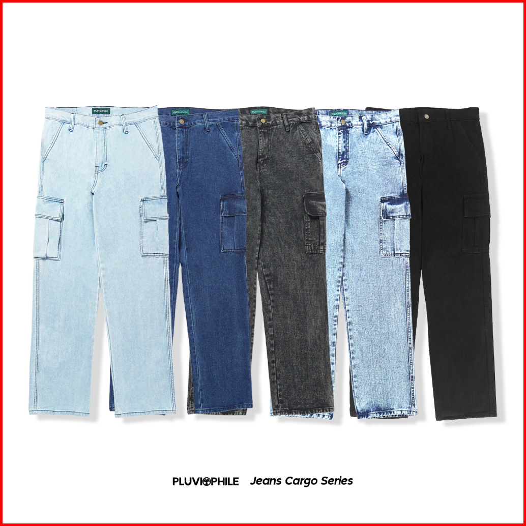 Pluviophile - Long Cargo Pants Jeans Celana Cargo Jeans Loose Fit Reguler Standard Washed