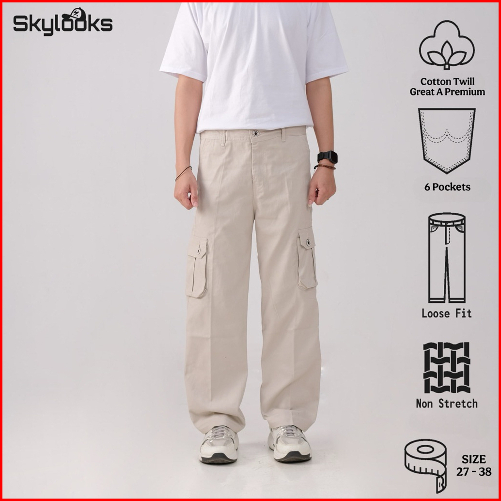 Celana Cargo Twill Cargo Panjang Gombrong Cotton Twill Pria Premium Distro Loose Fitt