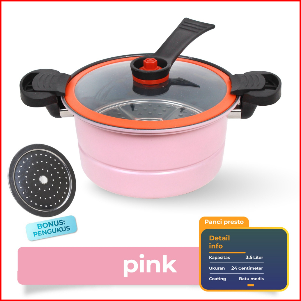 Pink + Pengukus, HIjau + Pengukus, Oren + Pengukus, Merah Tanpa Pengukus, Kuning TanpaPengukus, Pink Bulat, Oren Bulat, Hijau Bulat, Presto Putih 8L, Presto Hijau 8L, Presto Hitam 8L, [NEWWhite Tosca-8L, [NEW]White Purple-8L, [NEW] Baby Blue 8L, [NEW] White 8L, P25 Labu Mini Hijau, Hijau(Presto Labu)8L, Oren(presto Labu)8L, W22 Warna Random]