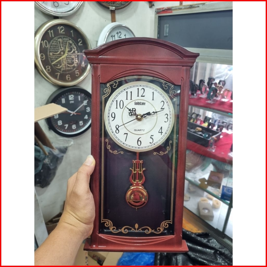 Jam Dinding Minimalis Bandul Motif Coklat Murah