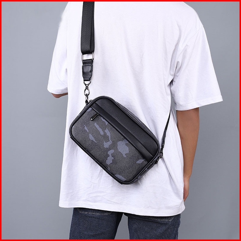 Tas Selempang Pria Model Korean Street Style Sling Bag Bahu Crossbody Kulit Pu Elegan Kasual Untuk Daily Look Travel Han