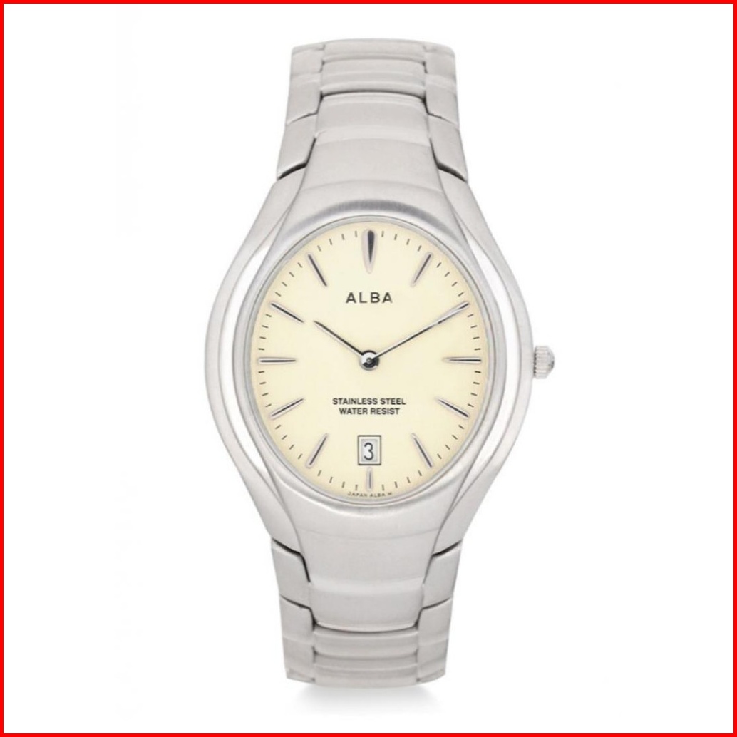 Alba Jam Tangan Wanita Oval Fashion Avkc45 Avkc45x1 Quartz Broken White Dial Stainless Steel Strap Watch