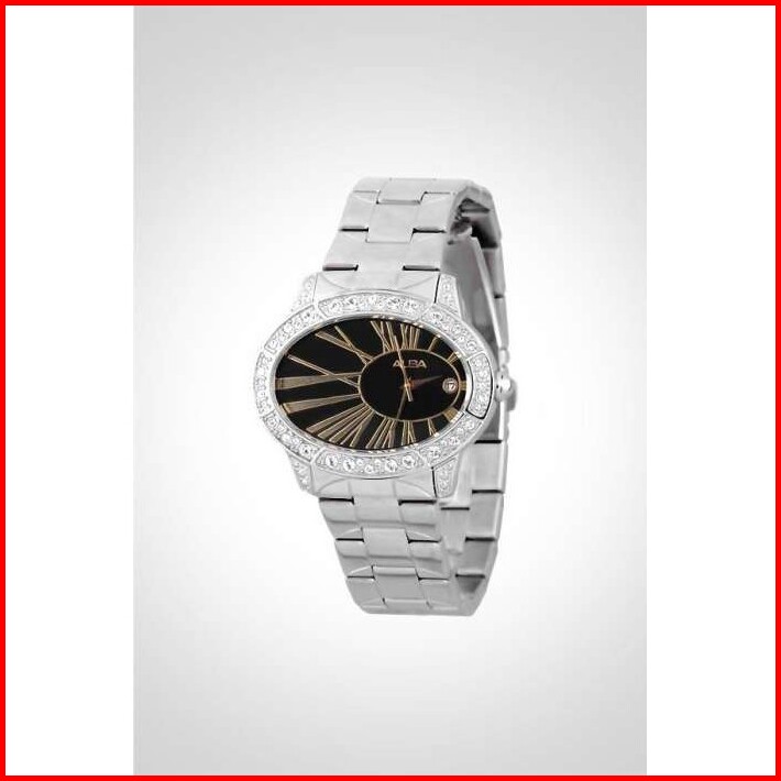 Alba Jam Tangan Wanita Axt317 Axt317x1 Fashion Quartz Black Dial Stainless Steel Strap Watch