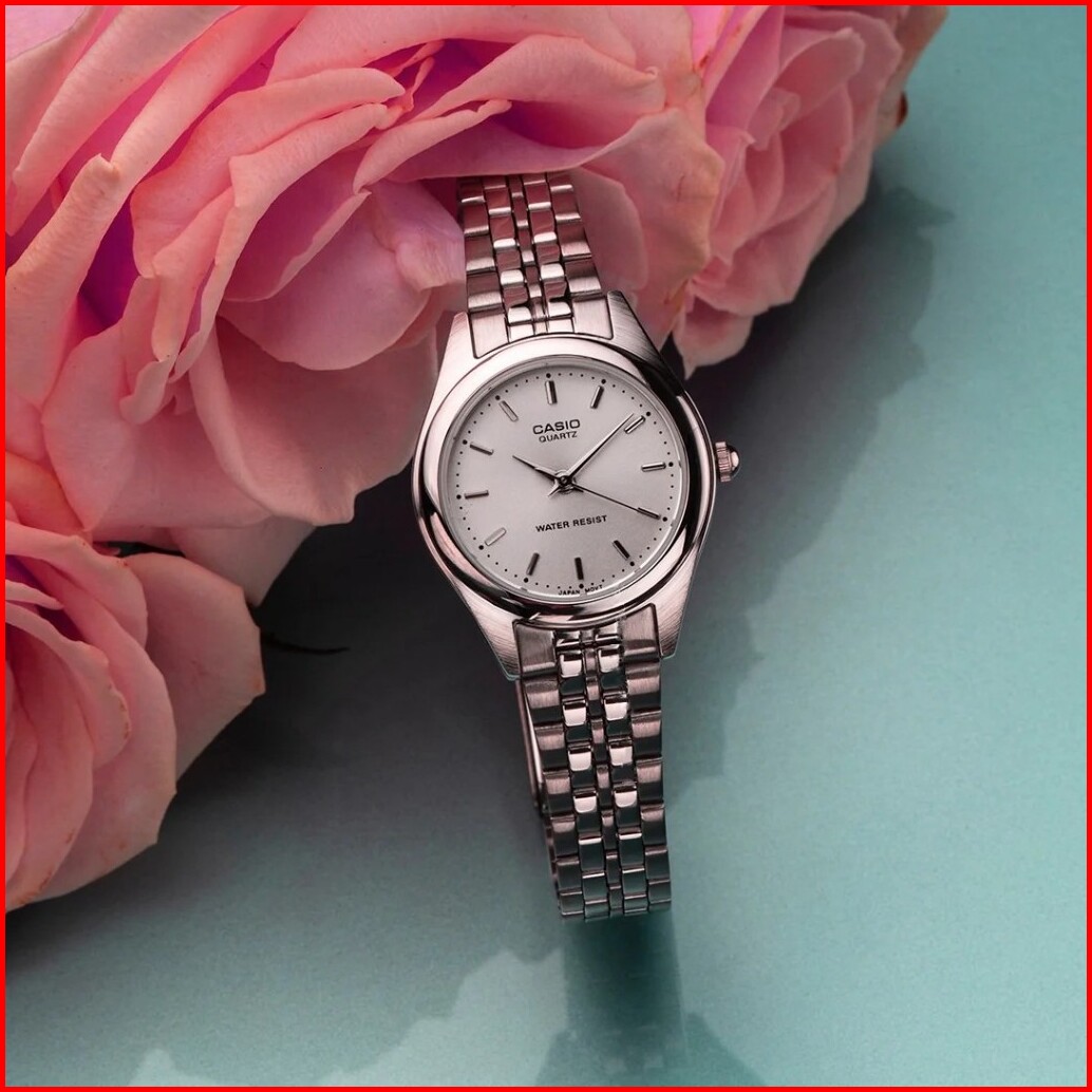 Jam Tangan Wanita Analog Casio Standard Ltp-1129a-7ardf Ltp1129 Ltp-1129a Enticer Dial Silver Stainless Steel Band