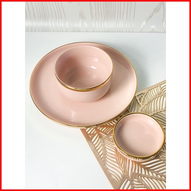 Ashome Piring Set 1 Orang Piring Makan Set Light Pink Isi 3 Pcs Piring Set Keramik List Piring Set Mewah Piring Sultan P