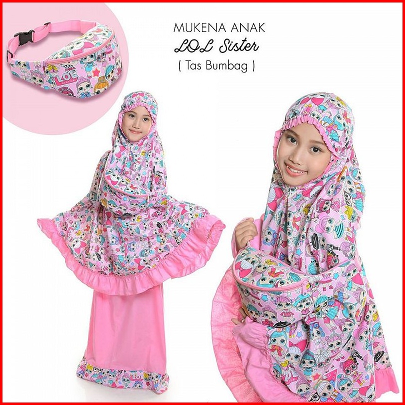 Pusat Mukena Indonesia - Mukena Anak Lola Sister Tas Bumbag