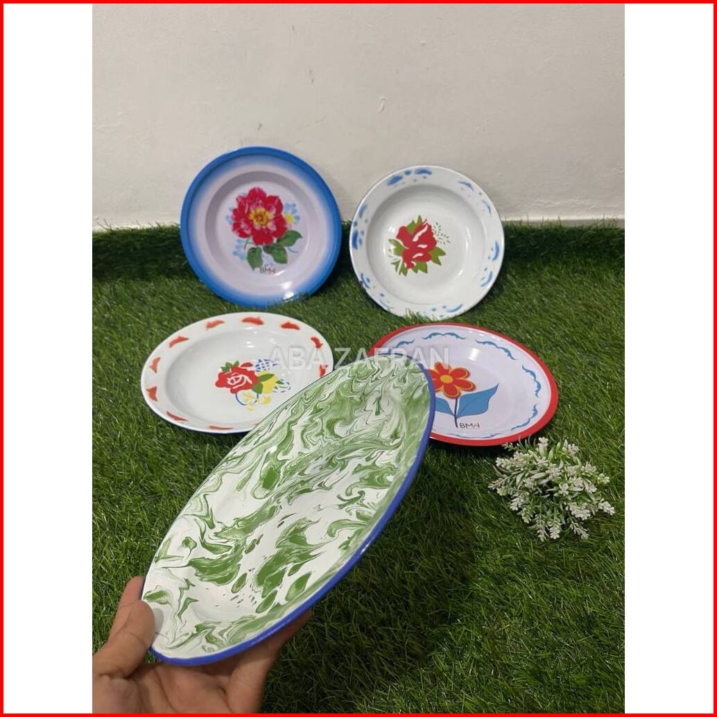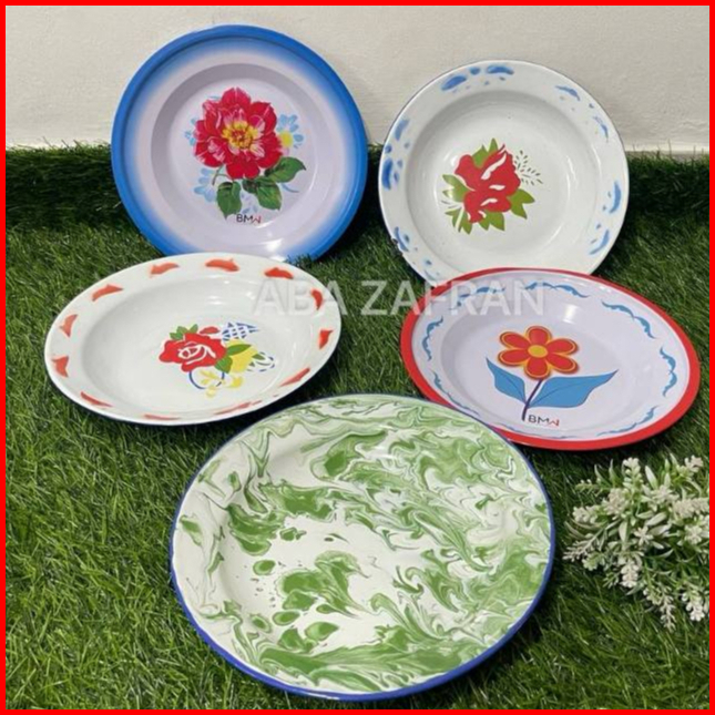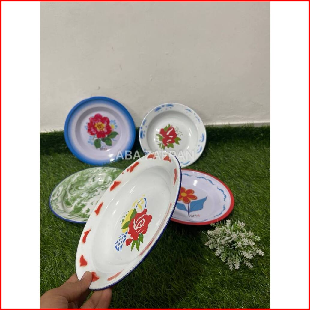 12 Pcs Piring Makan Jadul 23 Cm Panci Enamel Kaleng Seng Motif Brilik Vintage Kuno