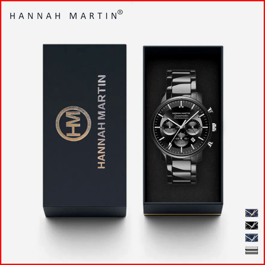 Hannah Martin Jam Tangan Pria 100 Original Keren Tahan Air Cowok Kronograf Quartz Analog Laki Jam Hitam Biru 113