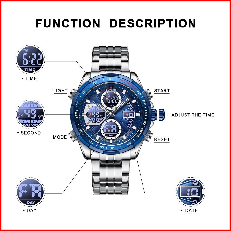 Jam Tangan Naviforce 9197 Nf9197 Anti Air Luminous Strap Rantai Jam Tangan Pria Original Garansi 1 Tahun Jam Tangan Orig
