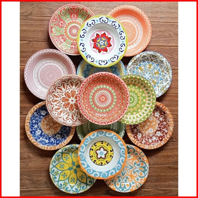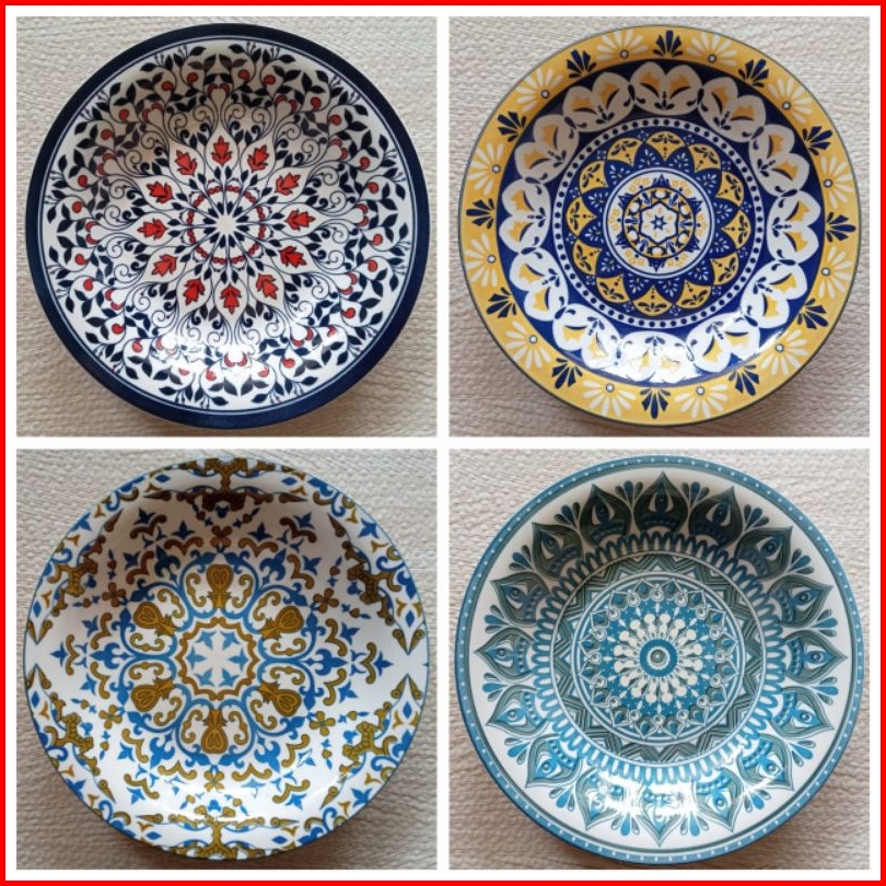 Piring Keramik Hias Wall Decor Isi 4 Pcs Kawat Gantungan Piring