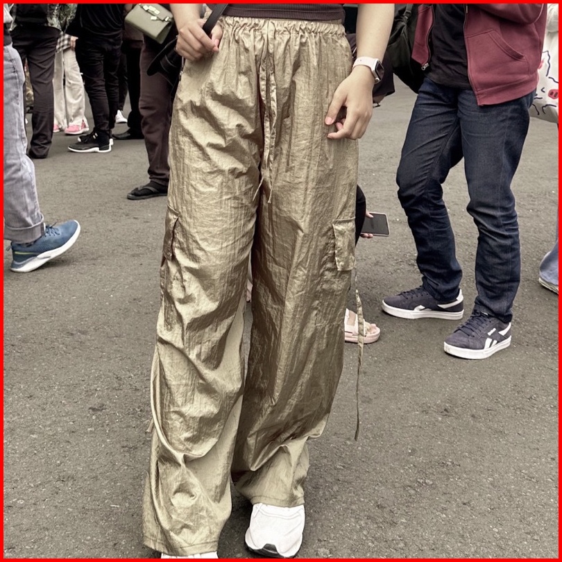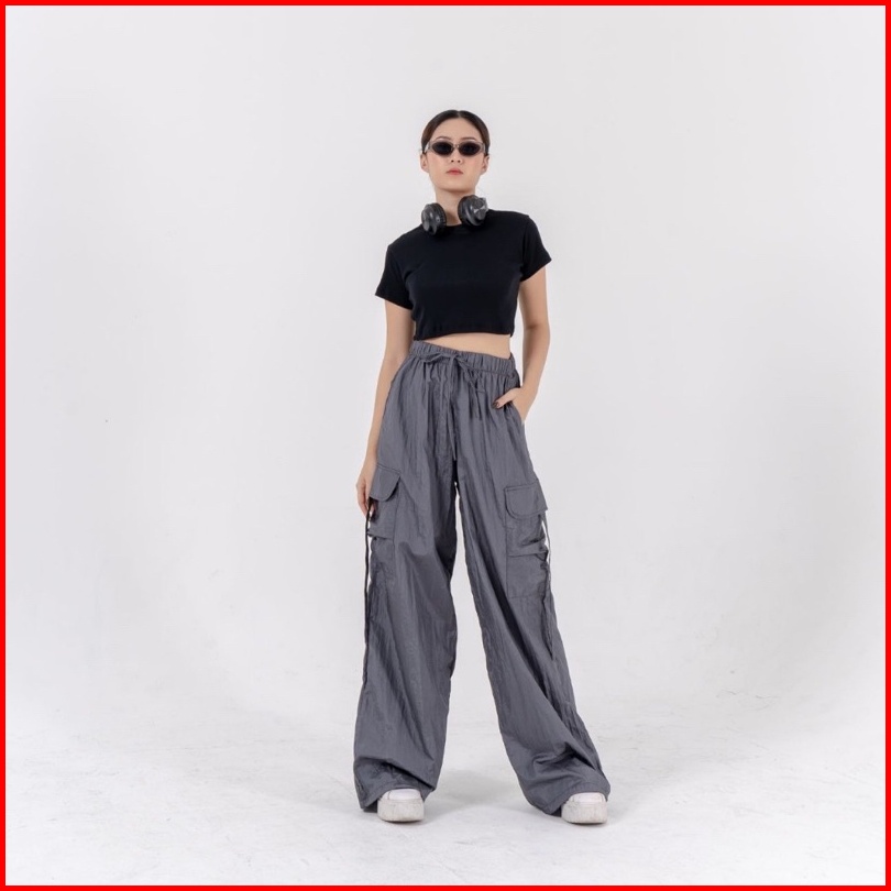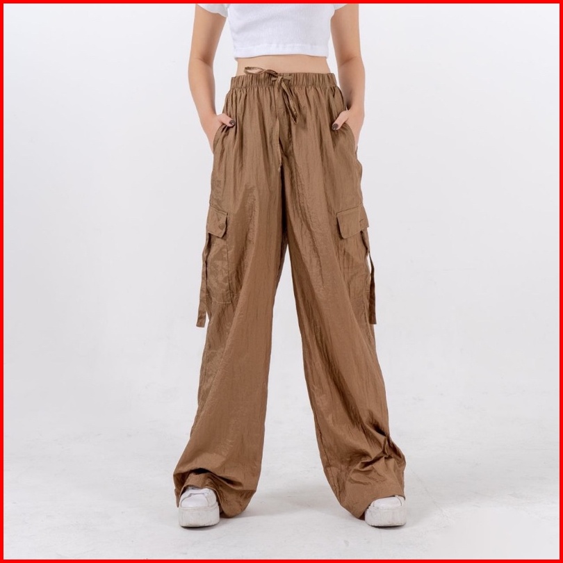 Celana Kulot Panjang Cargo Pants Parasut Wanita Korean Style Merlinz