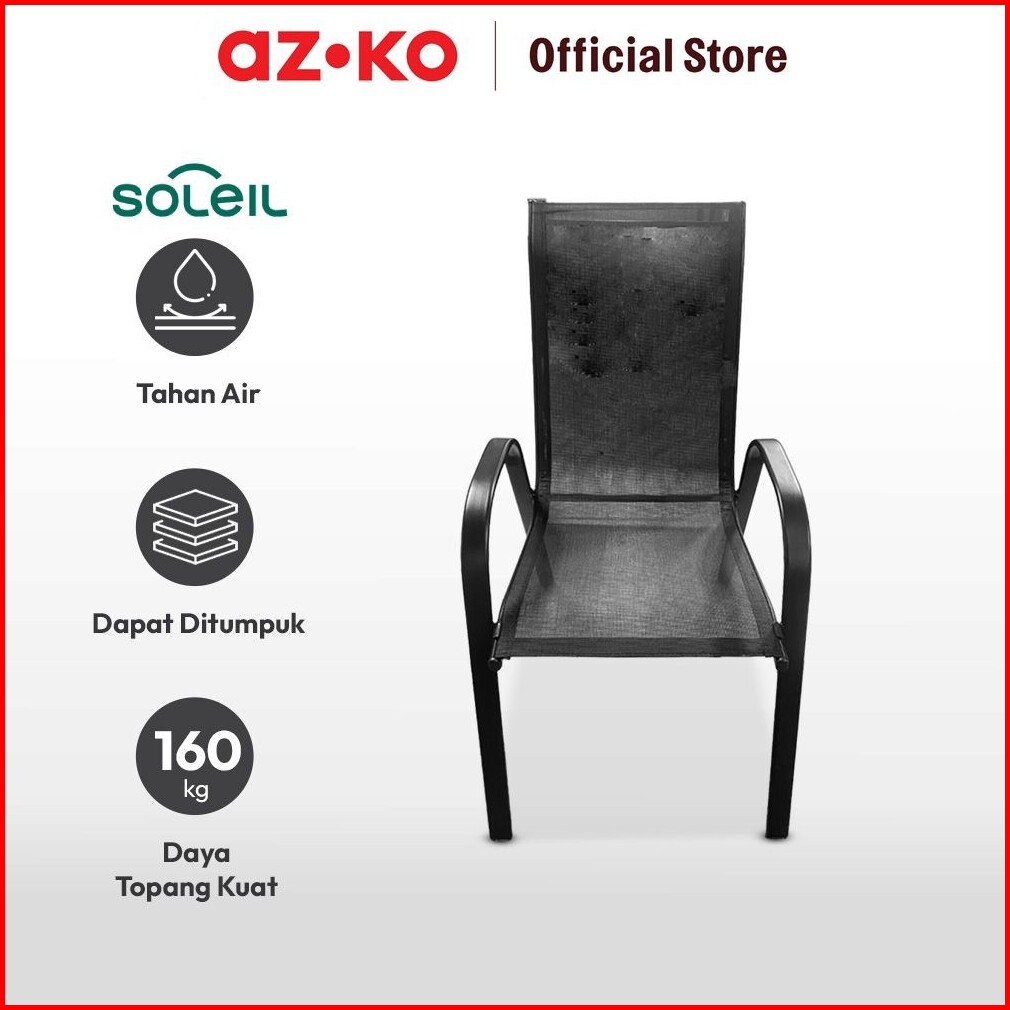 Azko Soleil Kursi Teras Berlengan Textilene- Hitam Balcony Chair Kursi Outdoor Serbaguna Furniture Rumah Tempat Duduk Ku