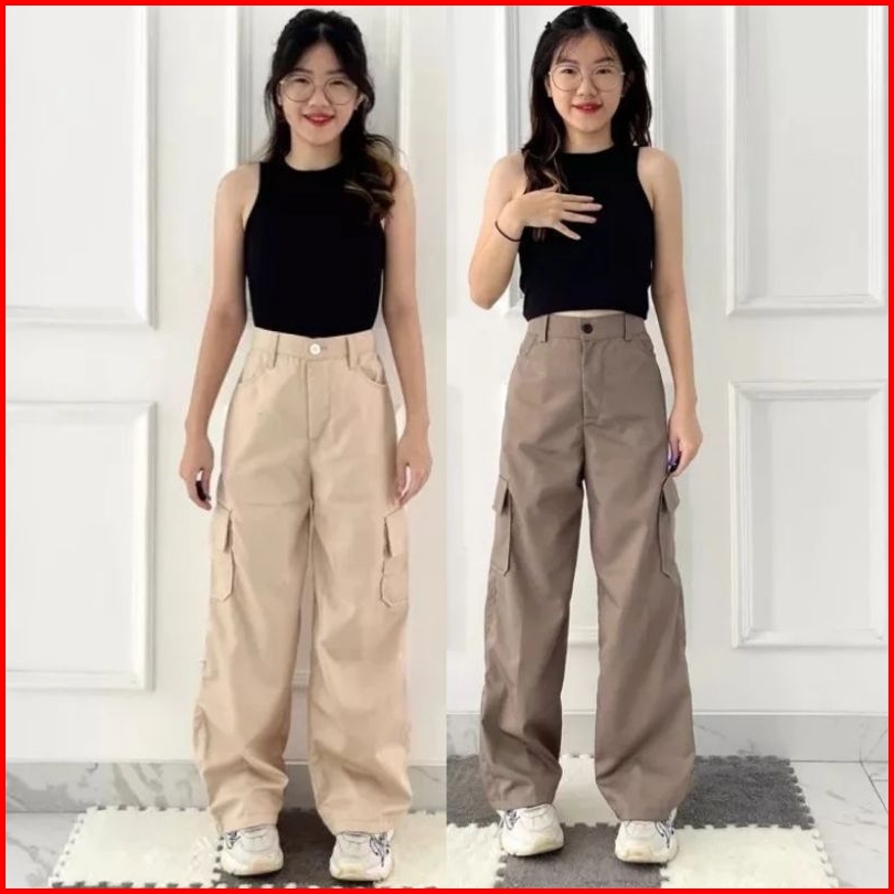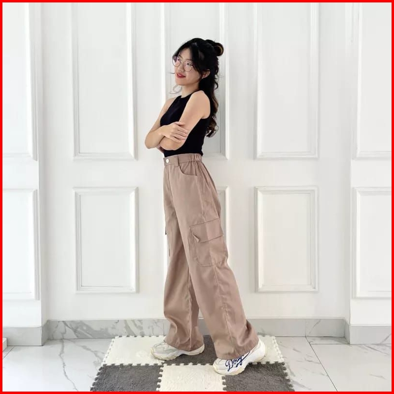 Celana Cargo Wanita Highwaist Loose Cargo - Cargo Pants Wanita Cargo Polos