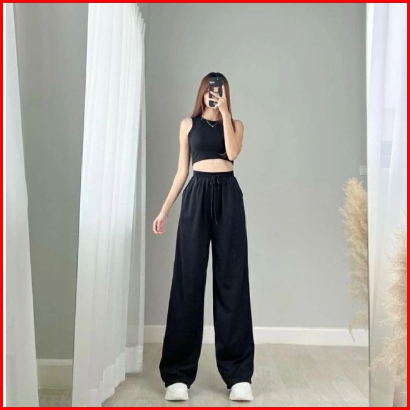 Celana Sweatpants Training Highwaist Ii Cargo Panjang Wanita Ii Kulot Panjang Kualitas Permium