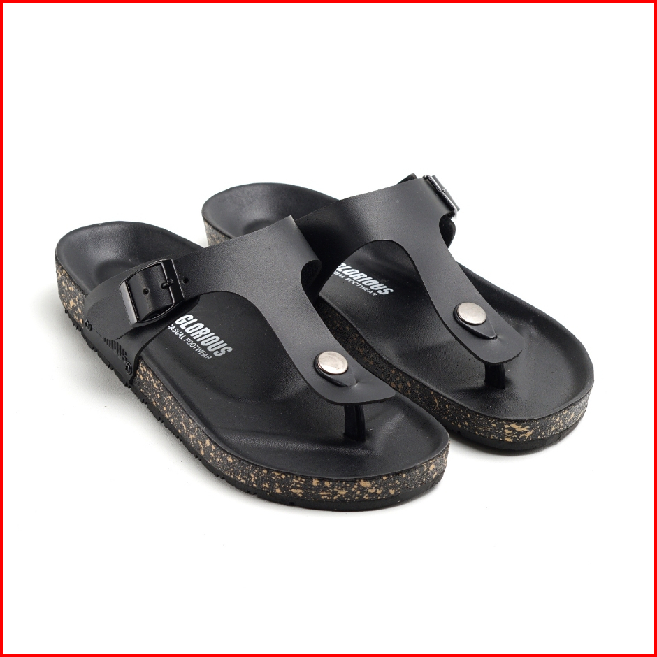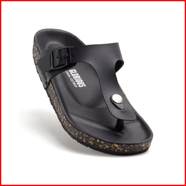 Glorious - Zero Full Black Sandal Kulit Jepit Pria Wanita Formal Kasual Santai Distro Nyaman Empuk