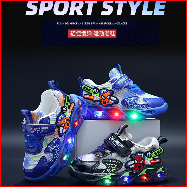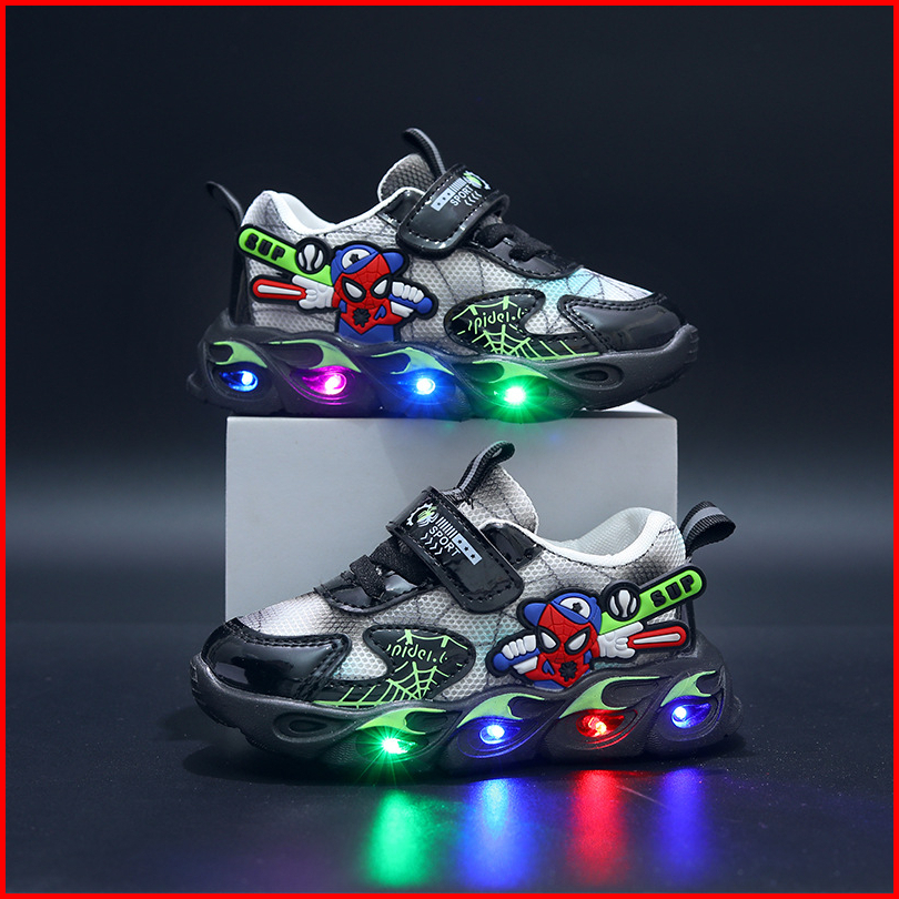 Sepatu Sneakers Anak Laki Laki Led Menyala Sekolah Free Box Untuk Umur 6 Bulan Sampai 5 Tahun
