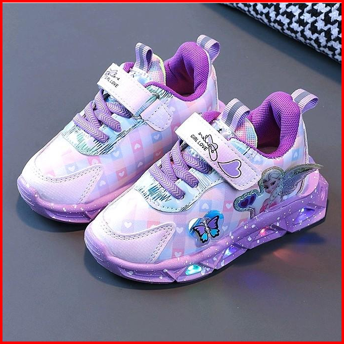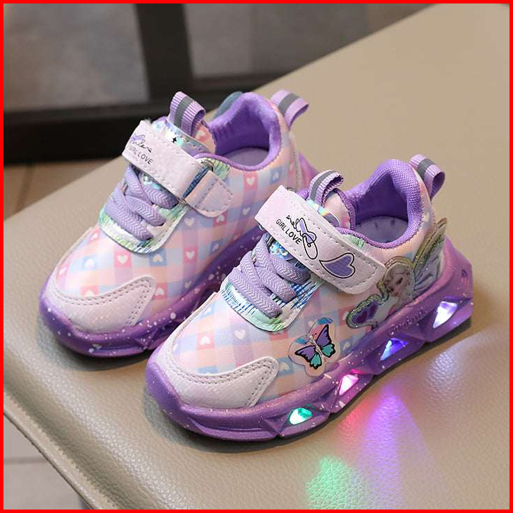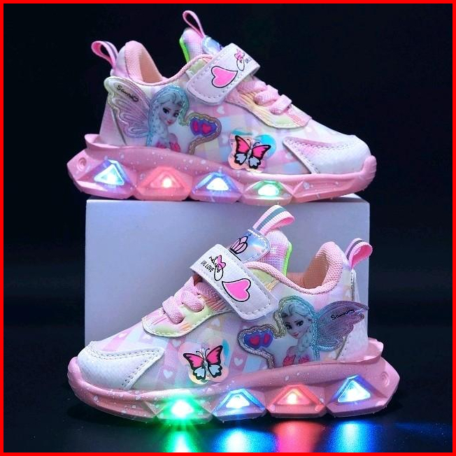 Sepatu Anak Cewek Casual Led Frozen Fashion Import Bahan Lentur Dan Anti Slip 21-35