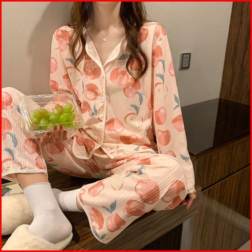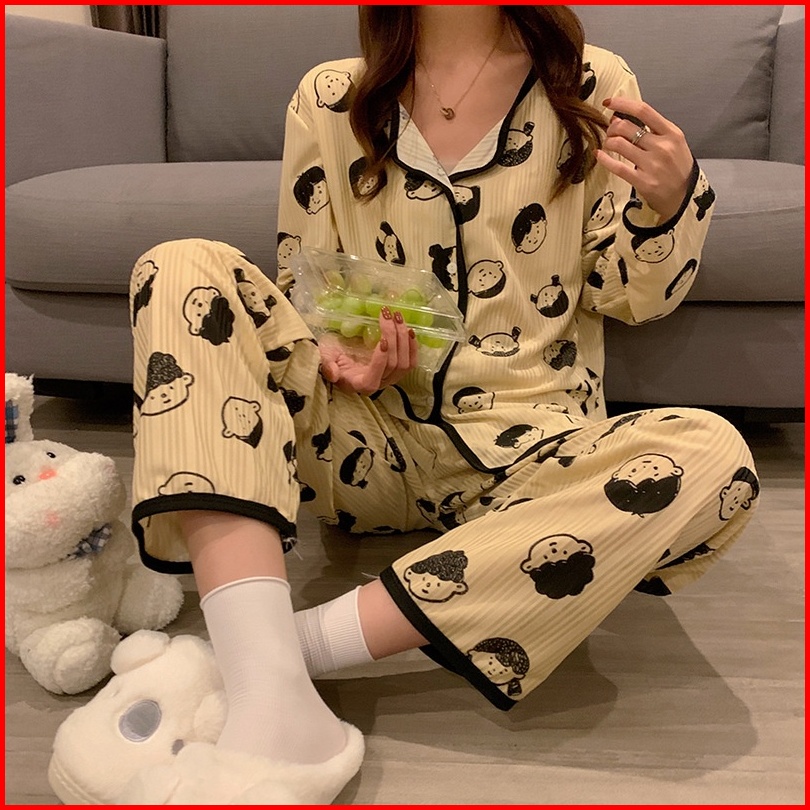 Lovera Baju Tidur Wanita Piyama Busui Kancing Depan Pp Lengan Panjang Celana Panjang