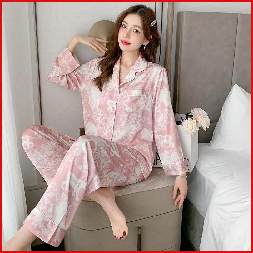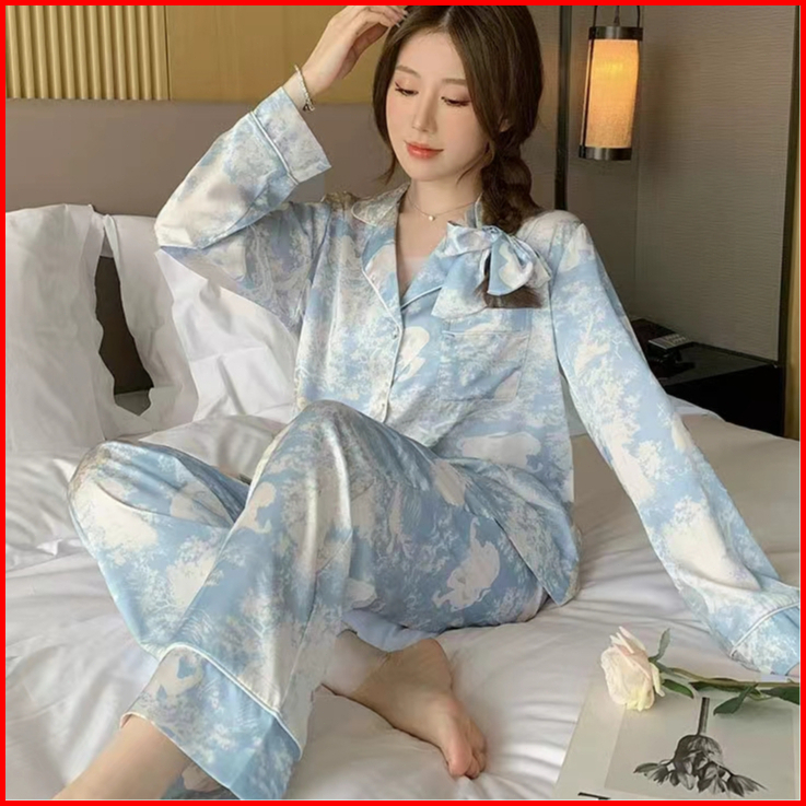 2025 One Set Tie Dye Lengan Panjang Piyama Royon Wanita Kekinian Sleepwear Pajamas Set