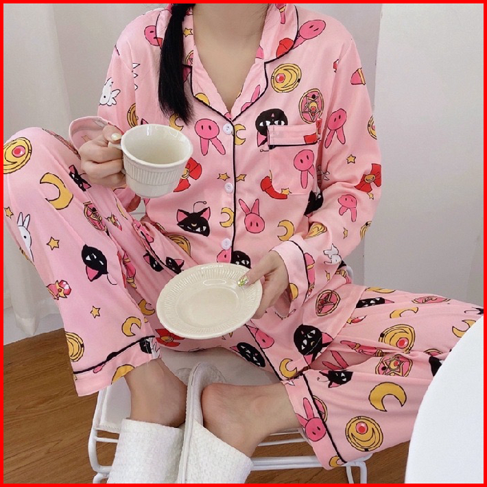 Piyama Baju Tidur Wanita Import Fashion Pp Lengan Panjang Celana Panjang