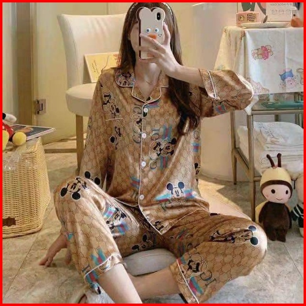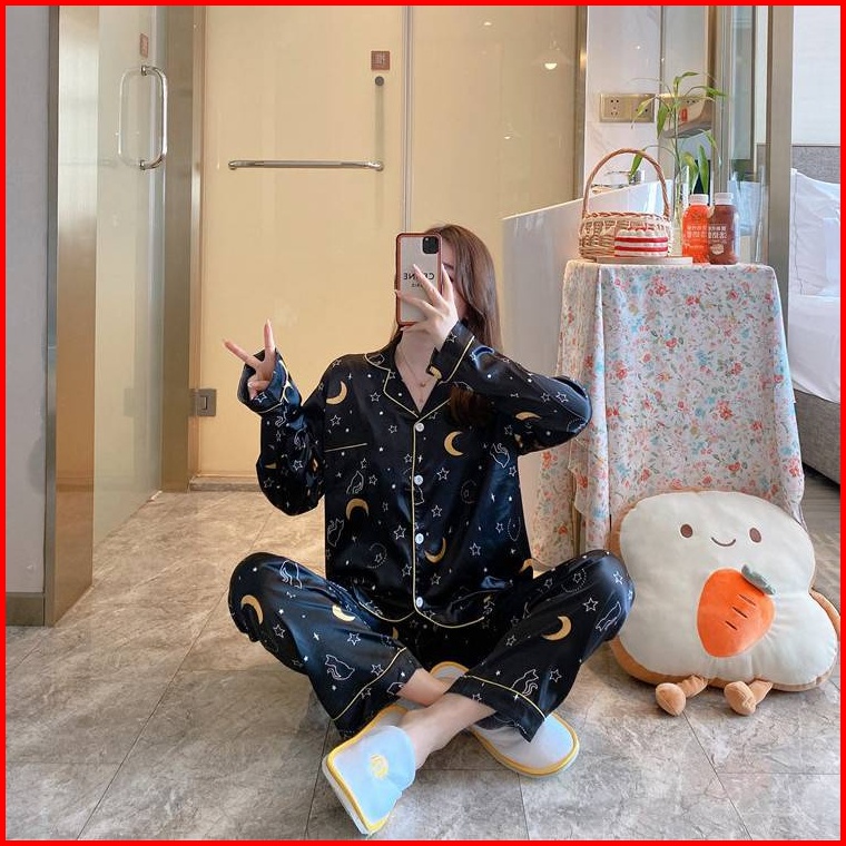 Redpink Set Piyama Women Hijab Kekinian Import Quality Kerah Kemeja With Saku Baju Kancing Clasic Long Sleeve Fit Long P