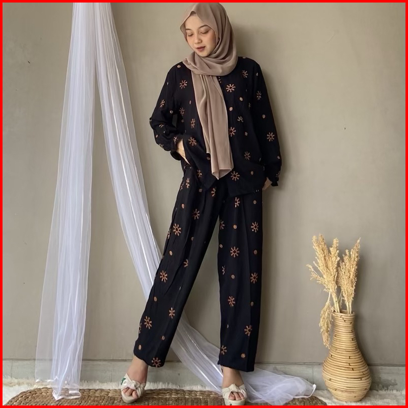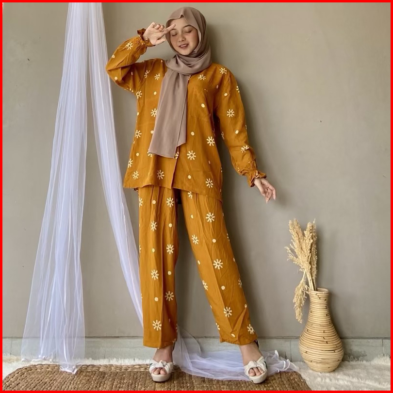 Daisy One Set Rayon Lengan Panjang Bunga Daisy Pajamas Rayon Piyama Rayon Baju Tidur Rayon