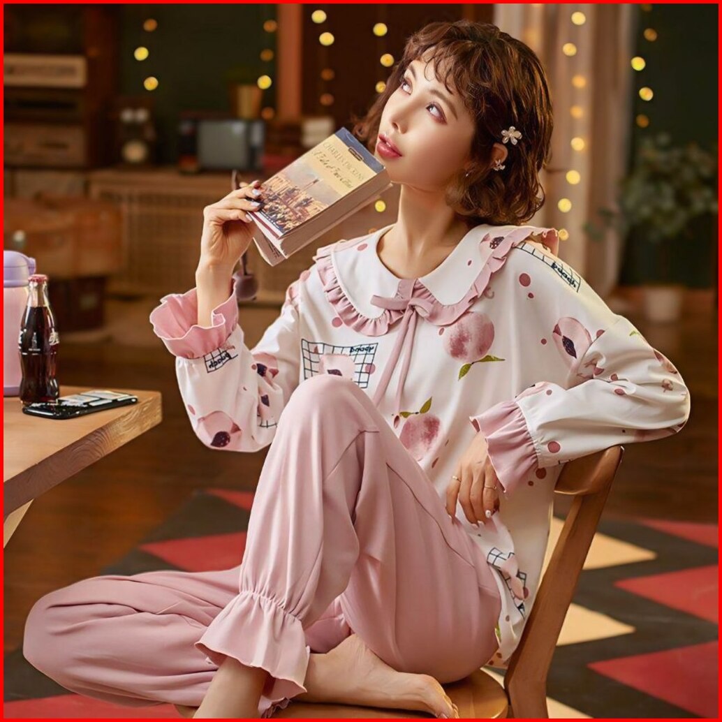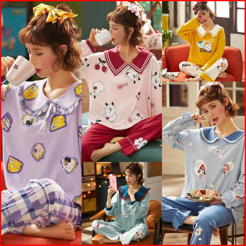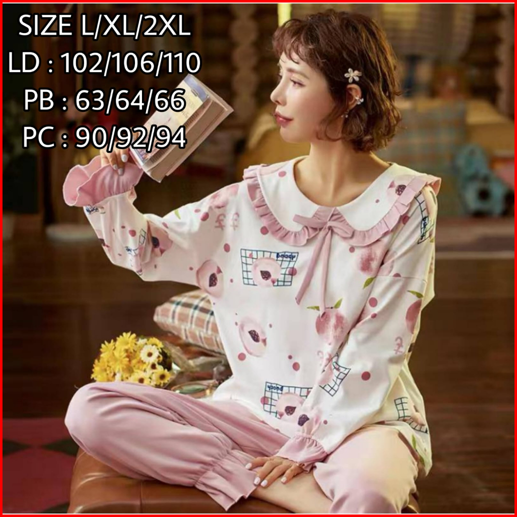 Gloryshop88 Piyama Setelan Lengan Panjang Baju Tidur Wanita Murah Bahan Premium