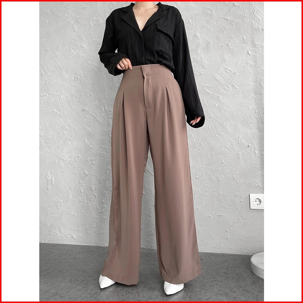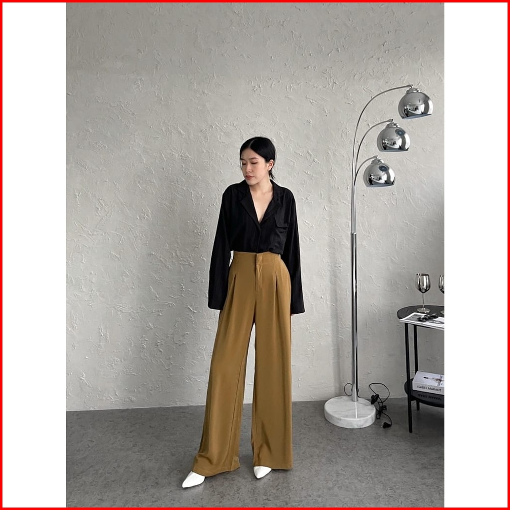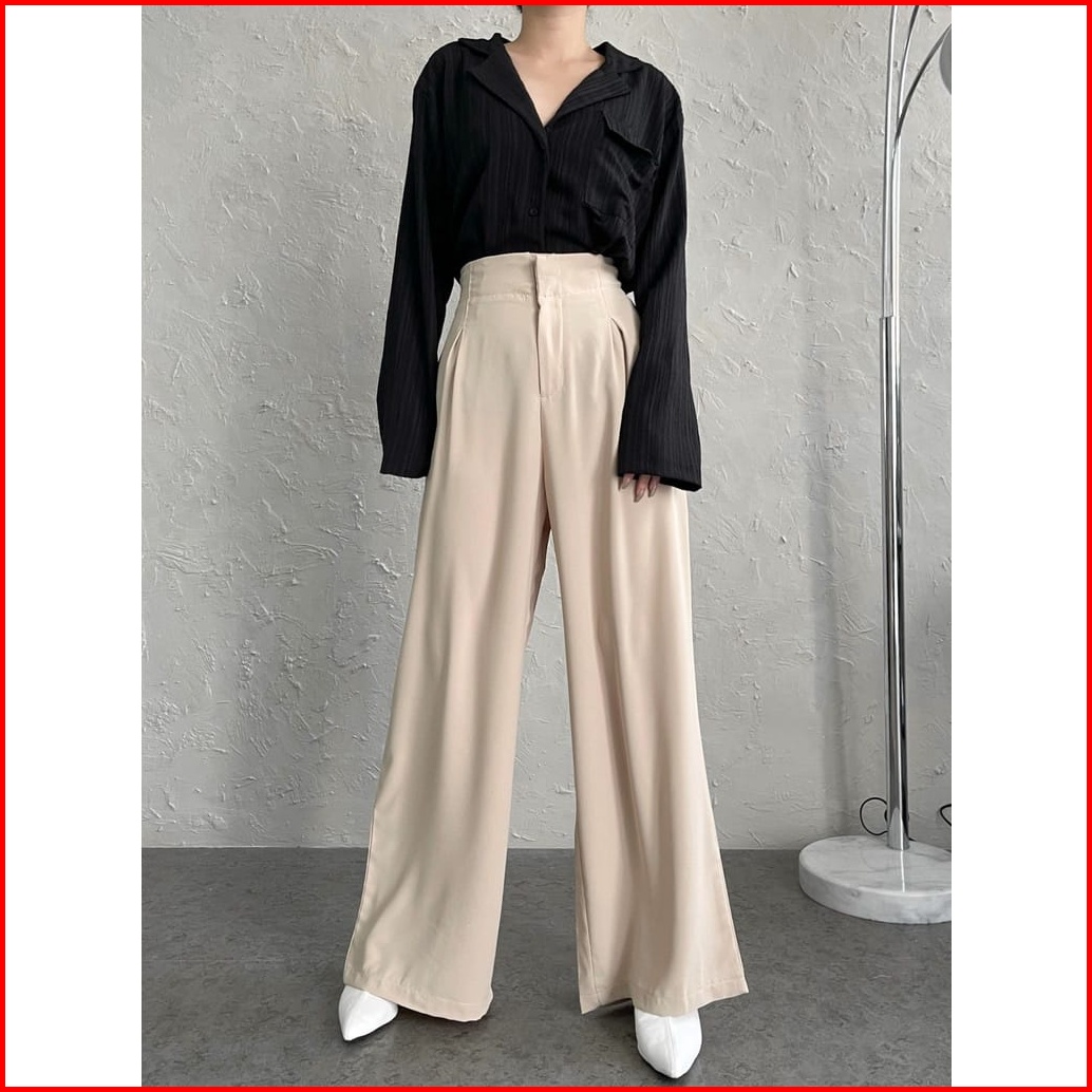 Vallina - Loose Pants Highwaist Cullote Premium Bawahan Celana Kulot Palazo Basic Kerja Kantor Wanita Korean Style