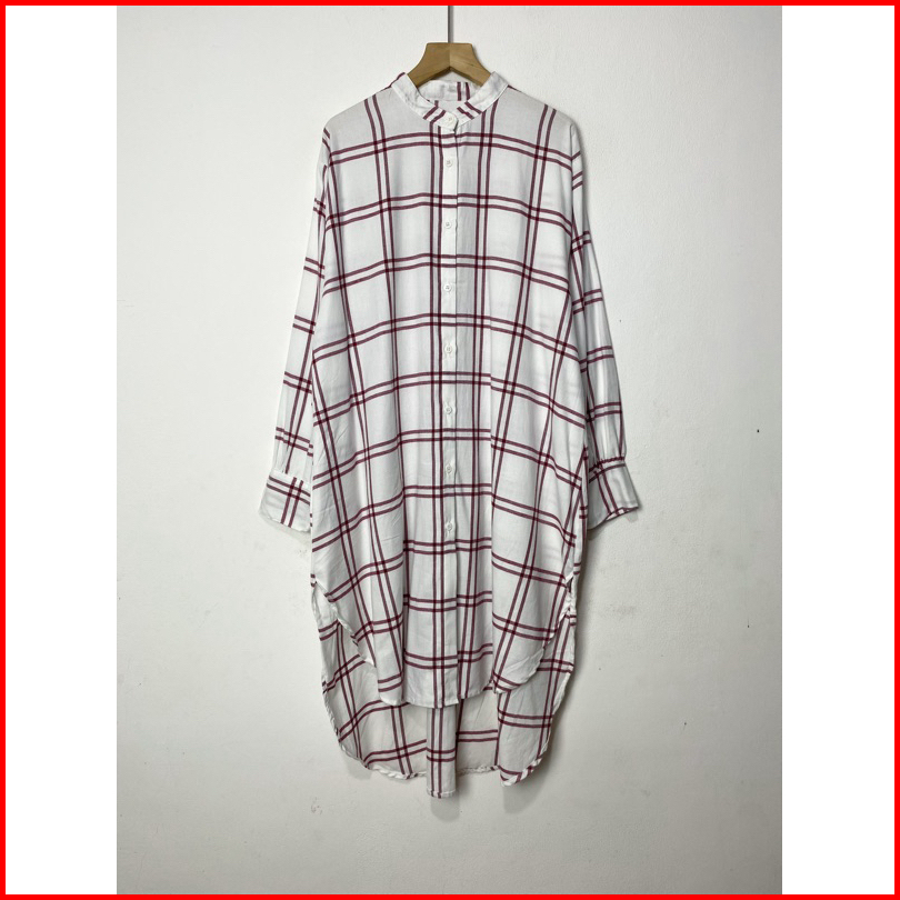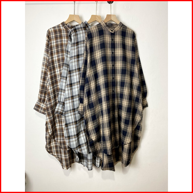 Aretha Long Tunik Midi Flanel Motif Kotak Katun Rayon