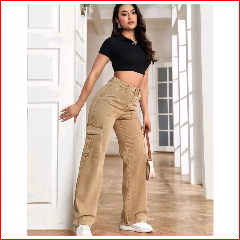 Cargo Jeans Tebal 13os Kekinian Korean Style Size 27-42 Celana Panjang Cargo Jeans