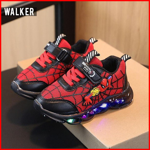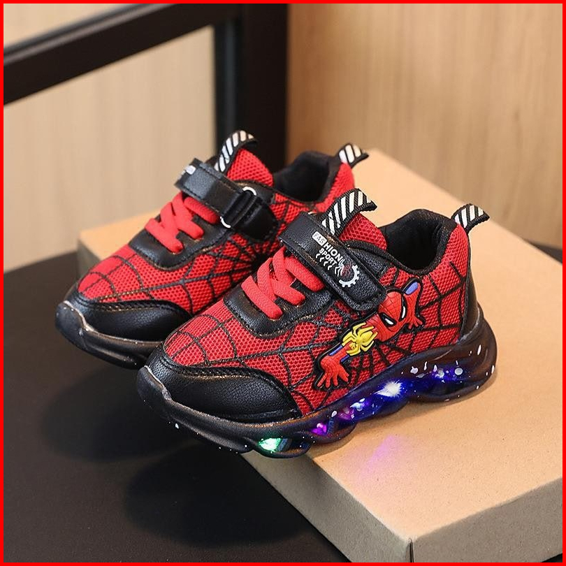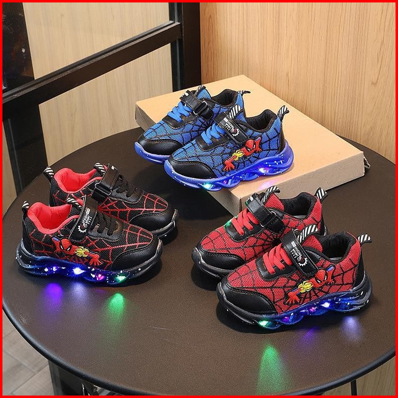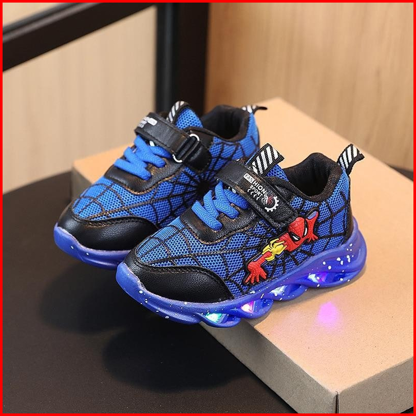 Lkm403 Sepatu Sport Spiderman Anak Laki-laki Casual Bayi Lampu Led Sekolah 1kg 3pc Ibu Bayi