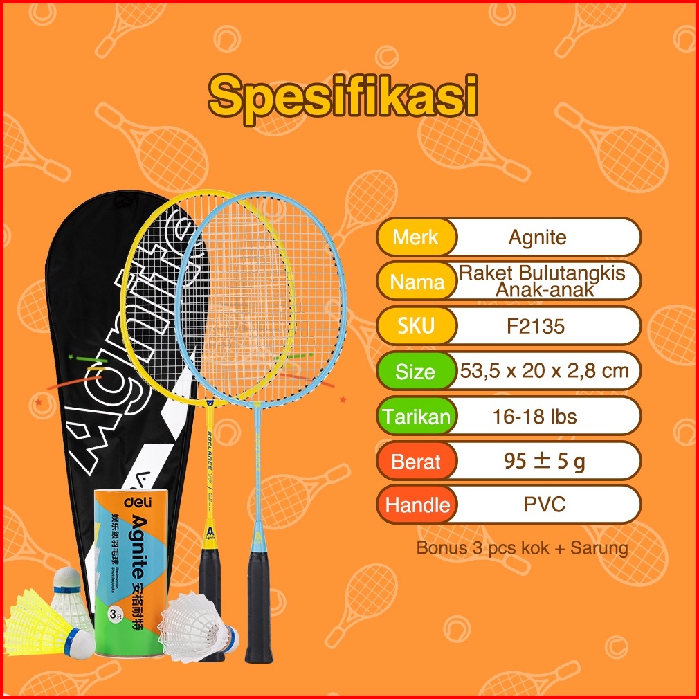 Agnite Children Badminton Racket Raket Badminton Bulu Tangkis Anak Alat Olahraga High Quality F2135