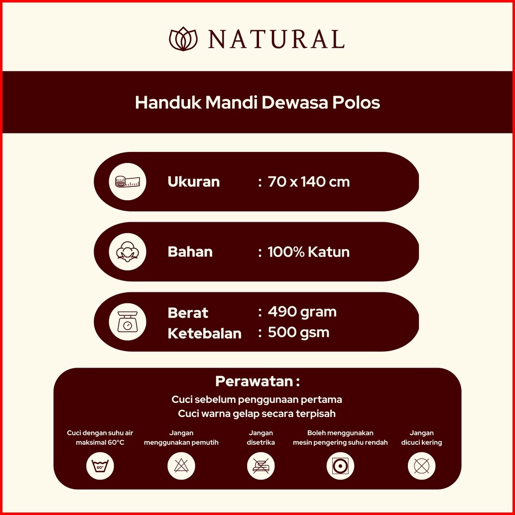 Handuk Mandi Natural By Chalmer 70 X 140 Cm Handuk Tebal Premium