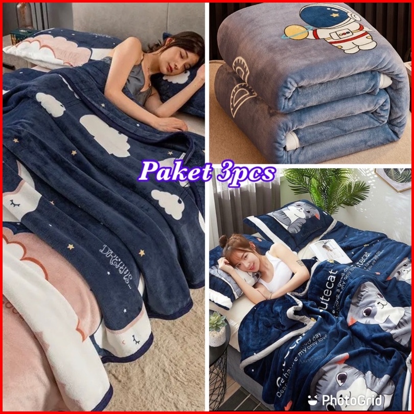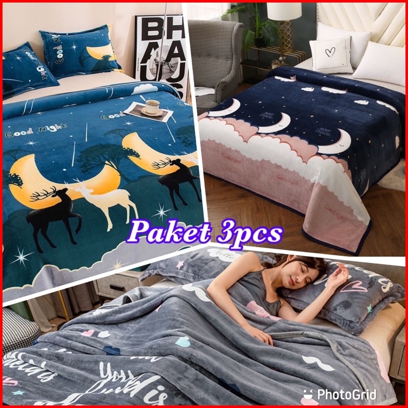 Promo Big Paket Hemat 3pcs Selimut Bulu Dewasa Motif Baru