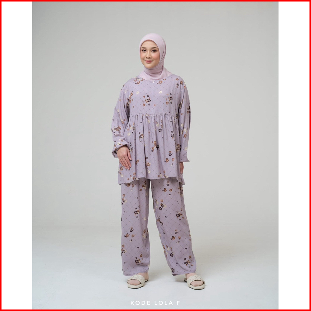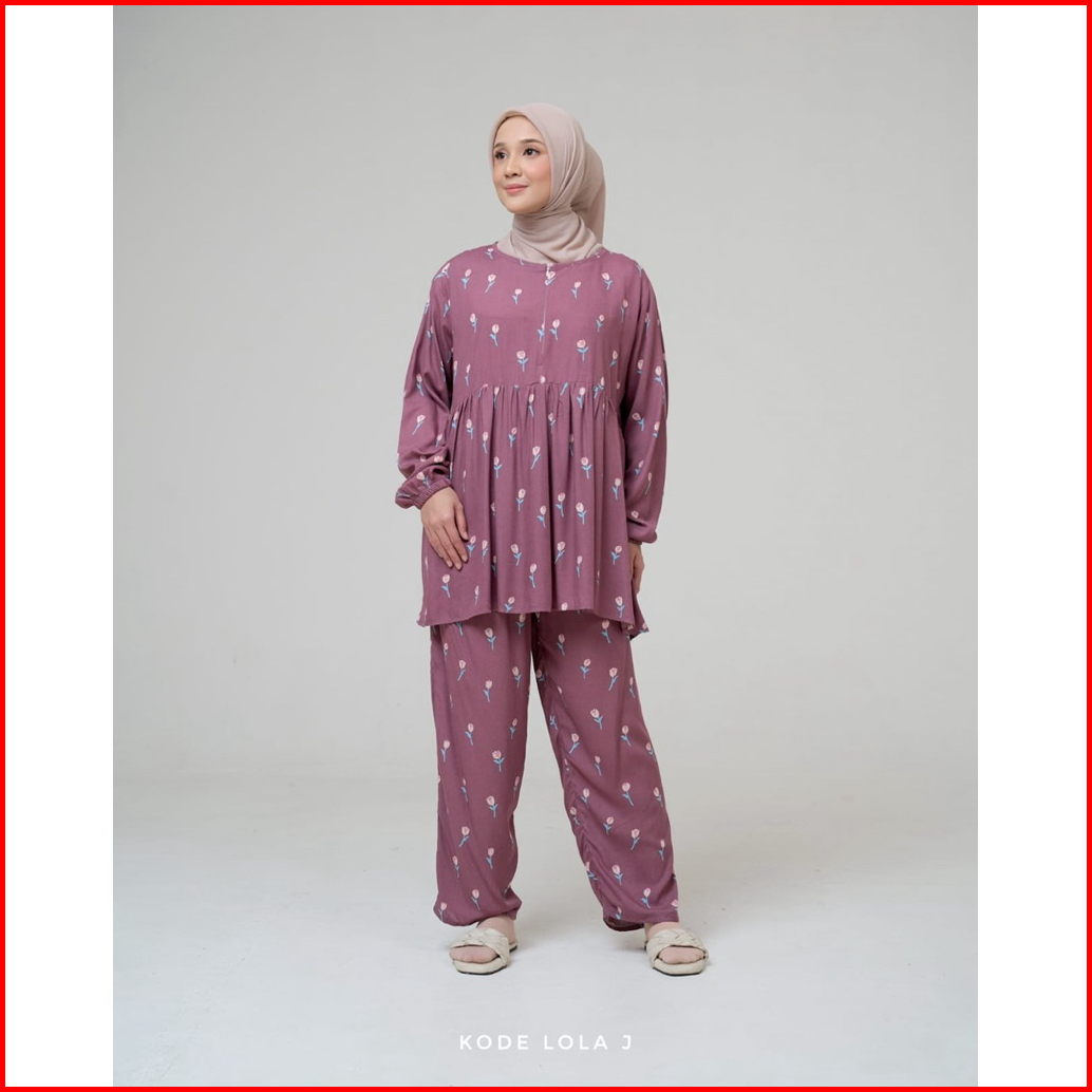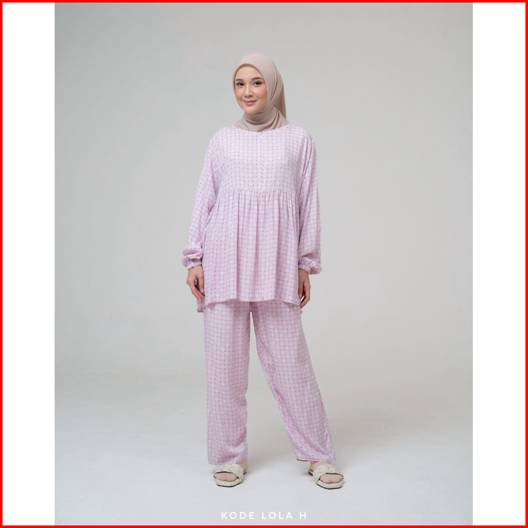 Lola Rayya Pajamas Set Lengan Panjang Celana Panjang Rayon Premium