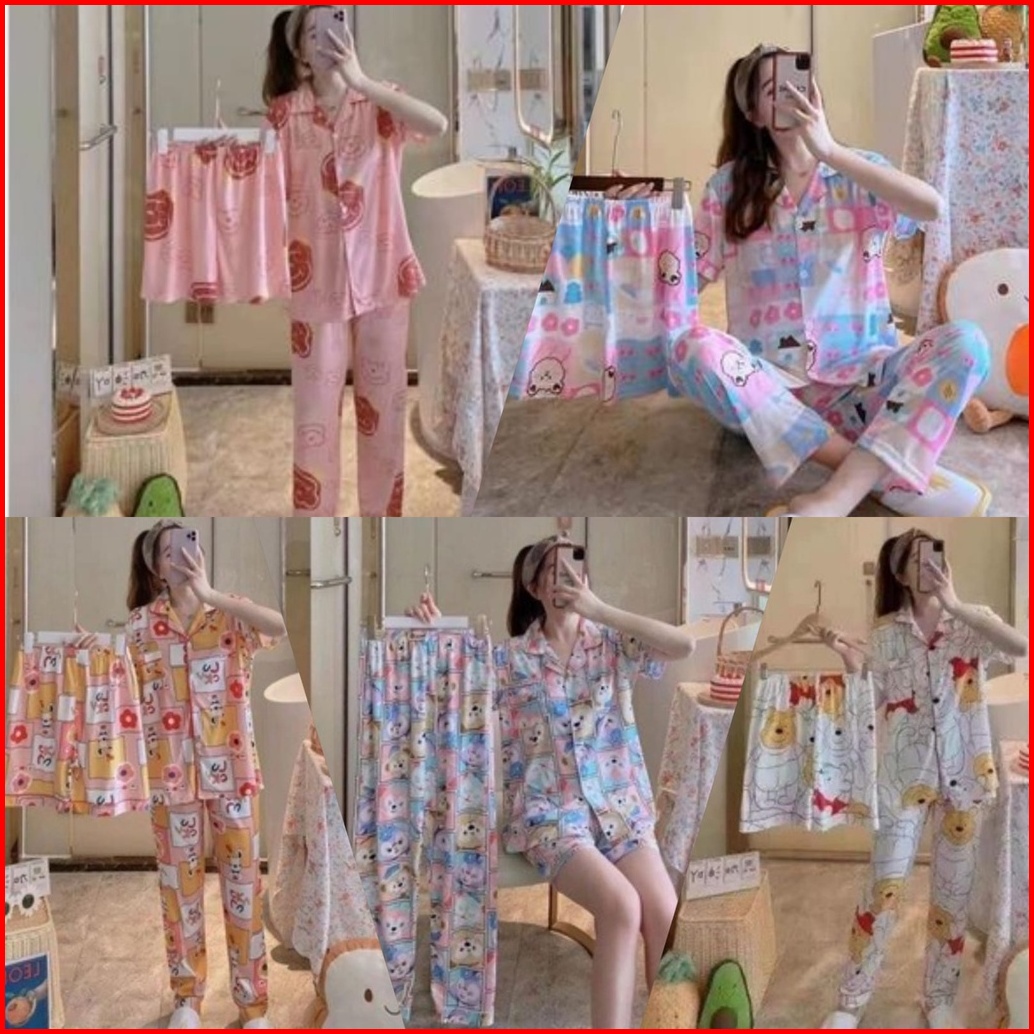 Gloryshop88 Setelan Piyama 3 In 1 Piyama Wanita Dewasa Piyama Murah