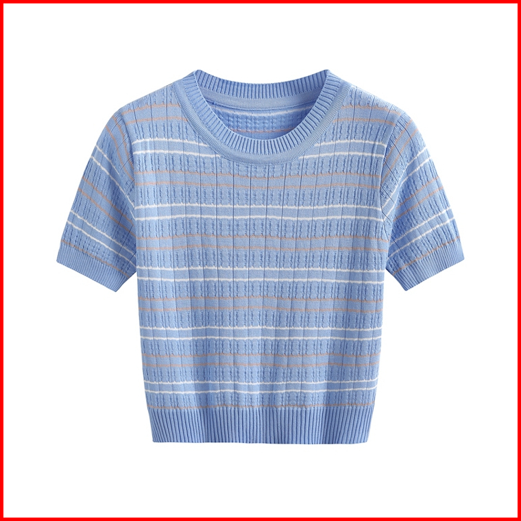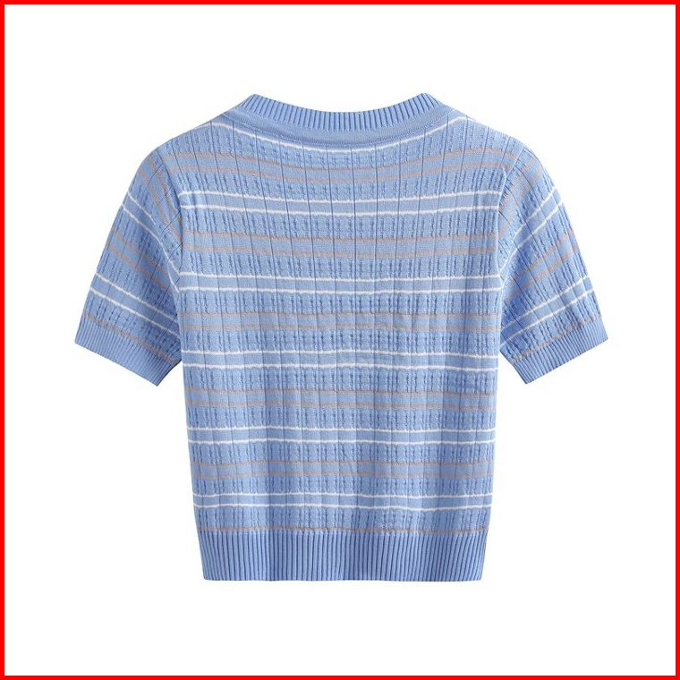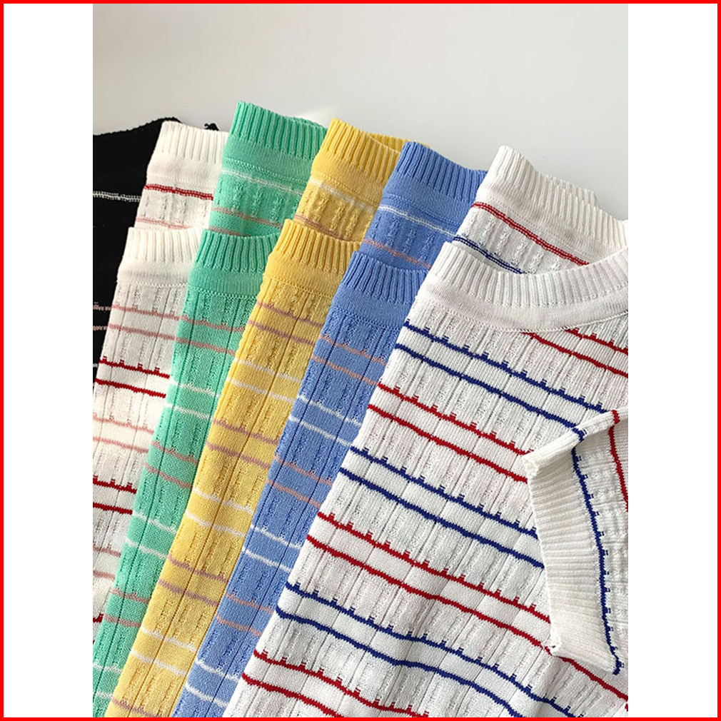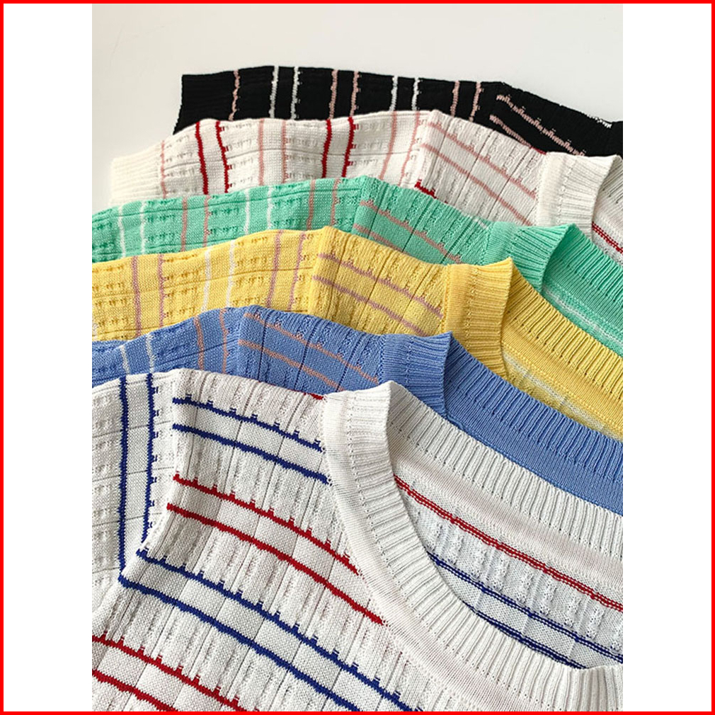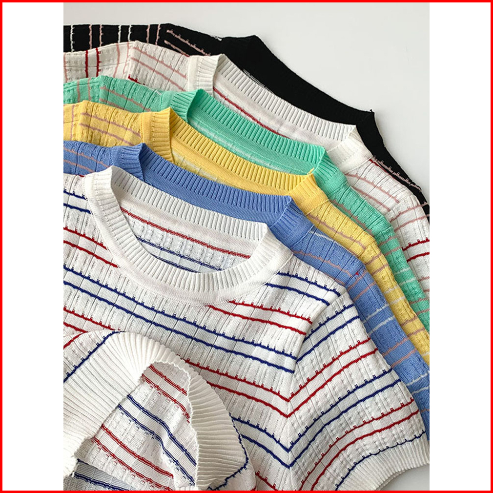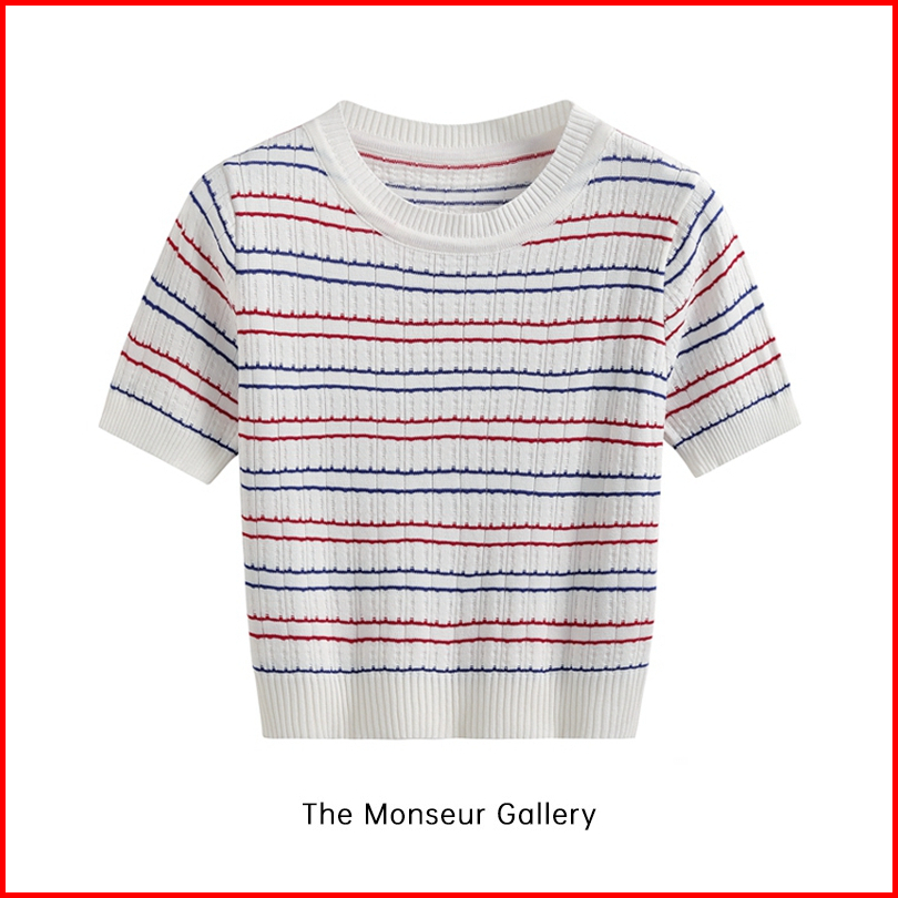 Obral Cuci Gudang The Monseur Gallery Kaos Rajut Lengan Pendek Wanita Striped T-shirt Korean Style