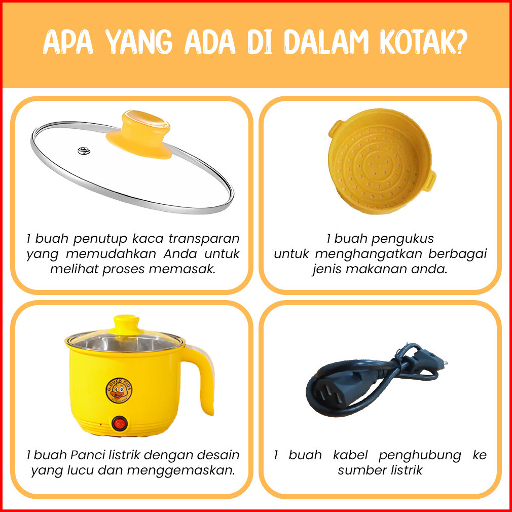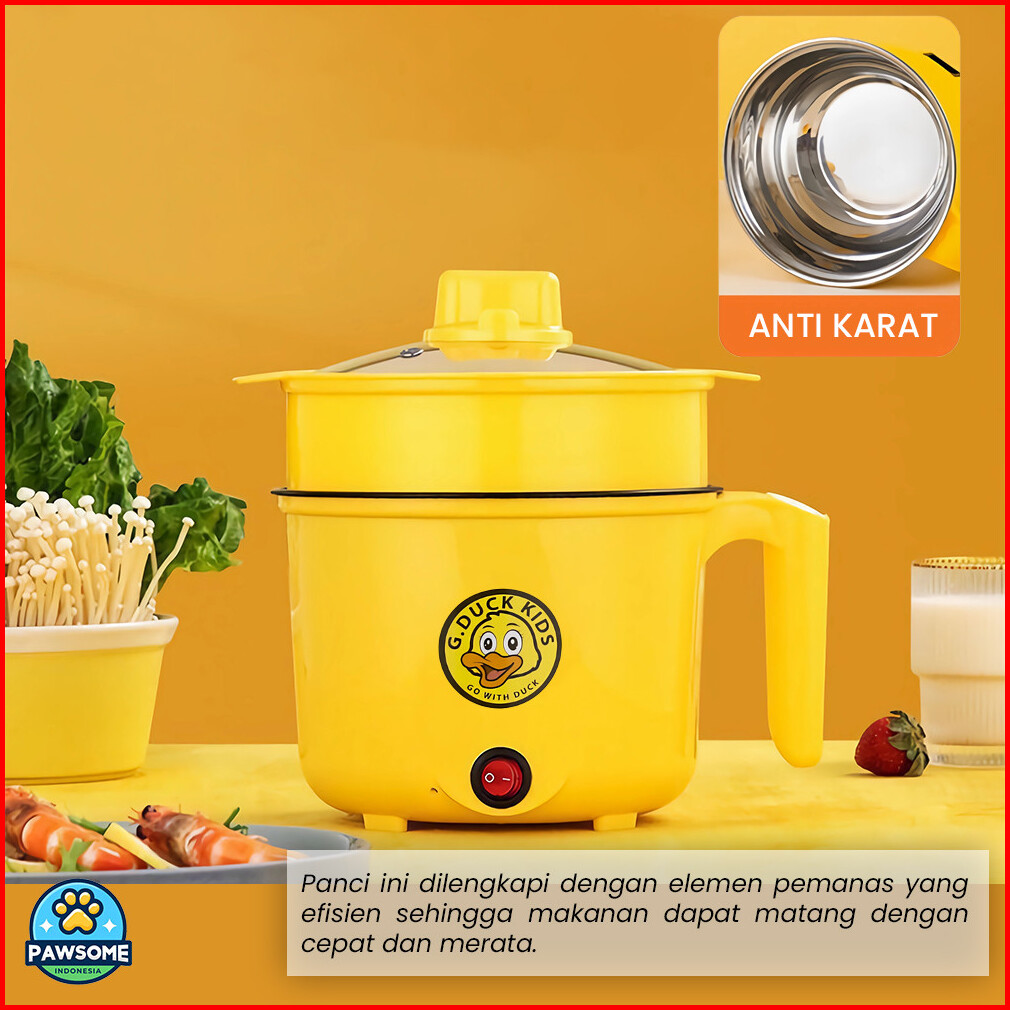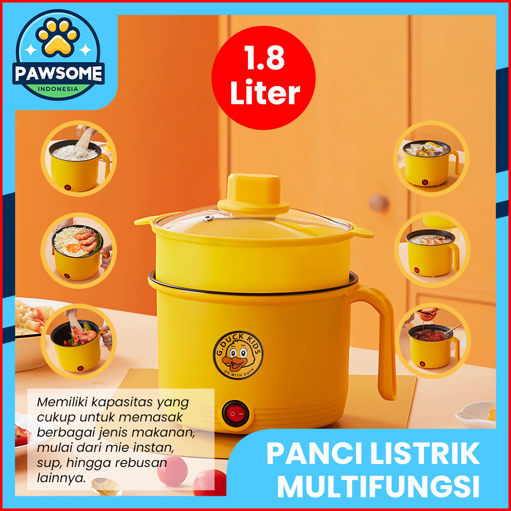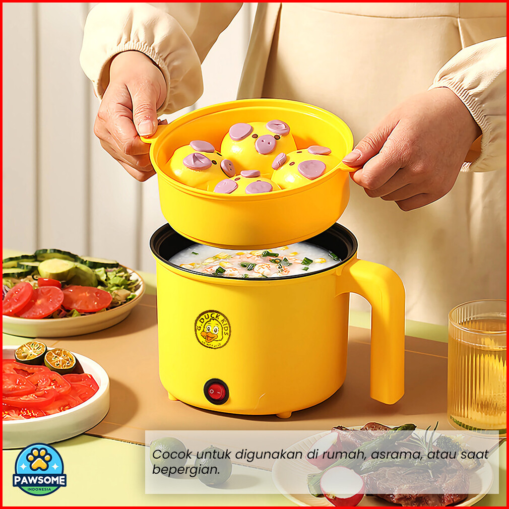 Ps Panci Listrik Multifungsi 1.8l Dengan Kukusan Rice Cooker Mini 18cm Motif Bebek Lucu