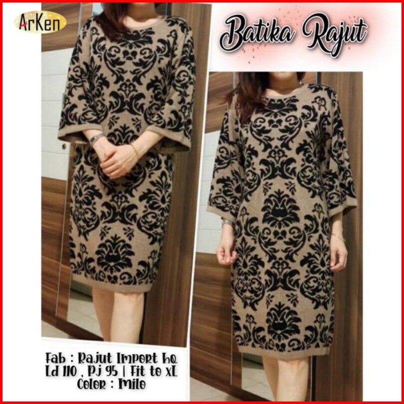 Tunik Rajut Import Jumbo Knit Motif Kekinian. Tunic Rajut Casual Cantik Korean Style. Dress Tunik Jumbo Premium Batika