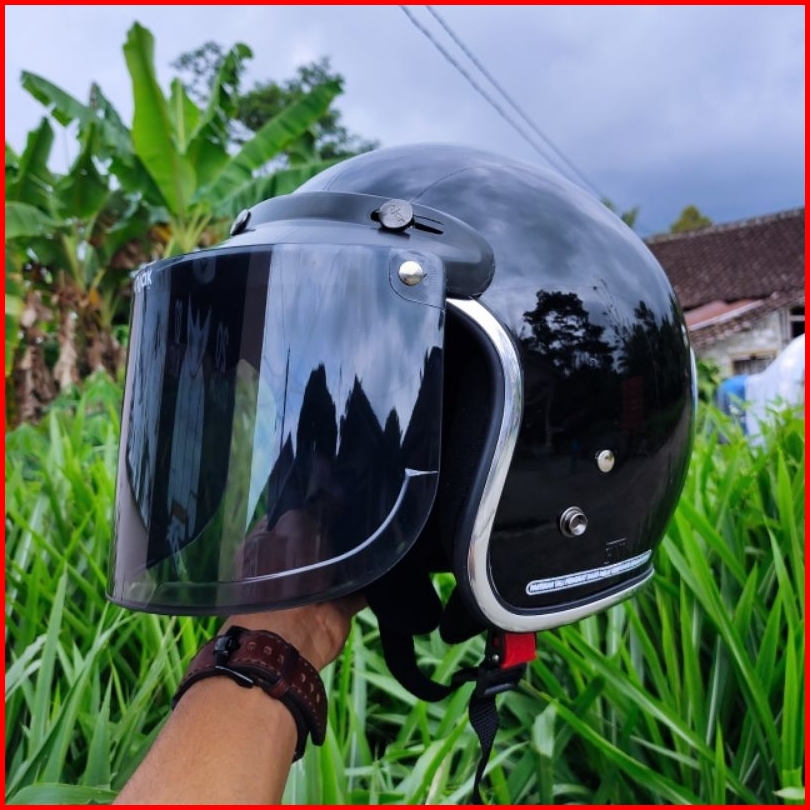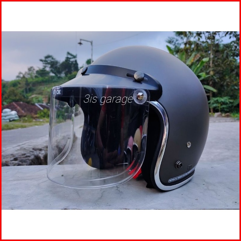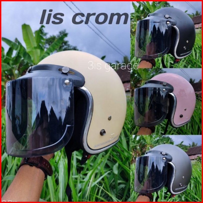 Helm Bogo Dewasa Helem Bogo Classic Helm Bogo Retro Pria Wanita Kaca Datar Sni