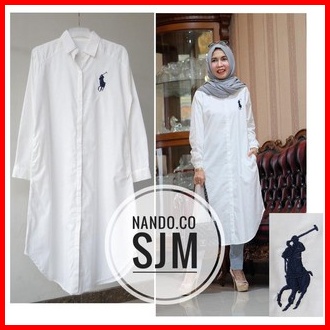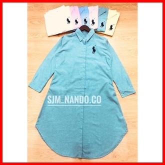 Mbo Long Tunik Polo Wanita Lengan Panjang Bahan Katun Oxford Fit L Xl Xxl Sampai Xxl Jumbo 929