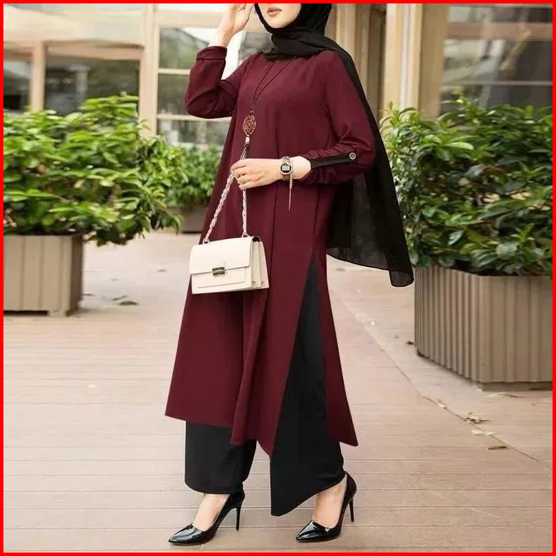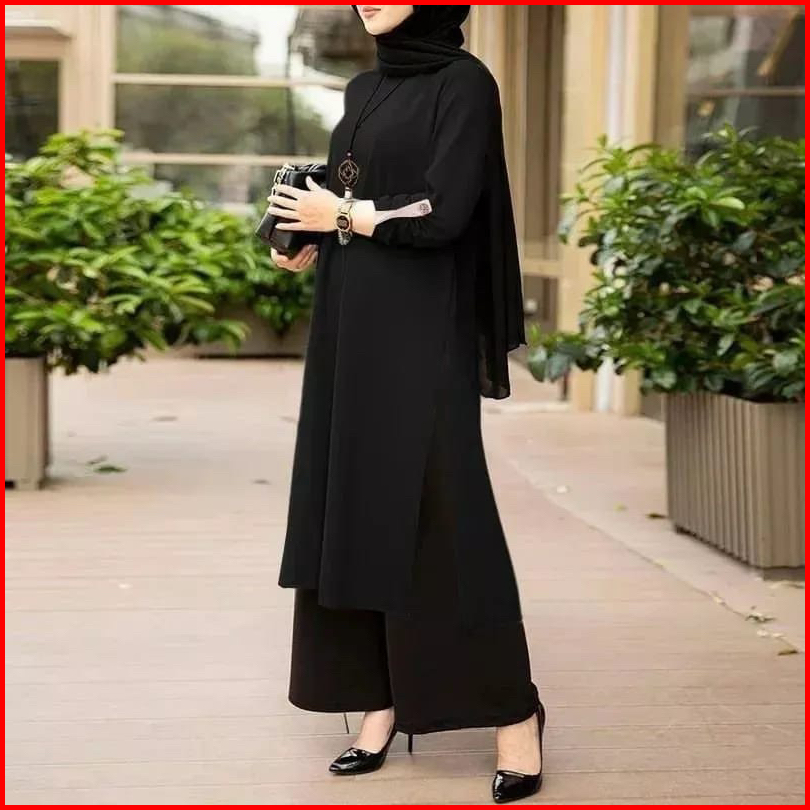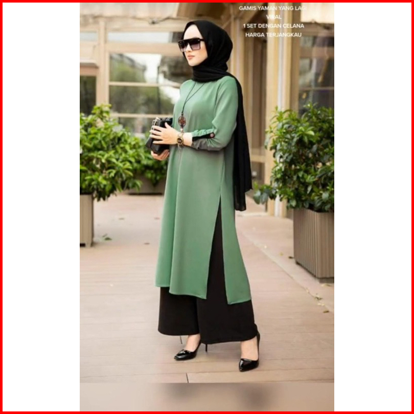 Mega Set Long Tunik Crinkle Airflow Ld 110-115 One Set Yaman Celana Setelan Polos Tunik Jumbo Setelan Polos Kombinasi Cr