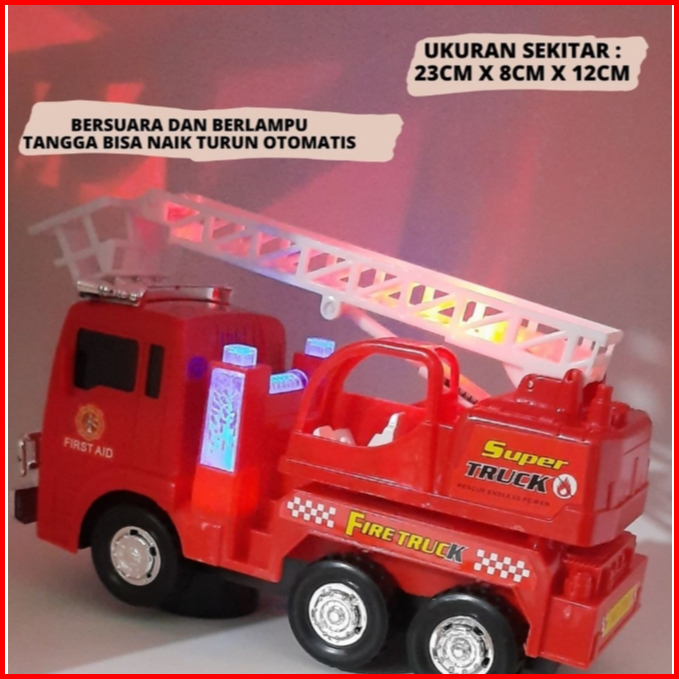 Wtbs Mainan Anak Mobil Pemadam Kebakaran Tangga Auto Dan Bersuara Sirine Dan Lampu