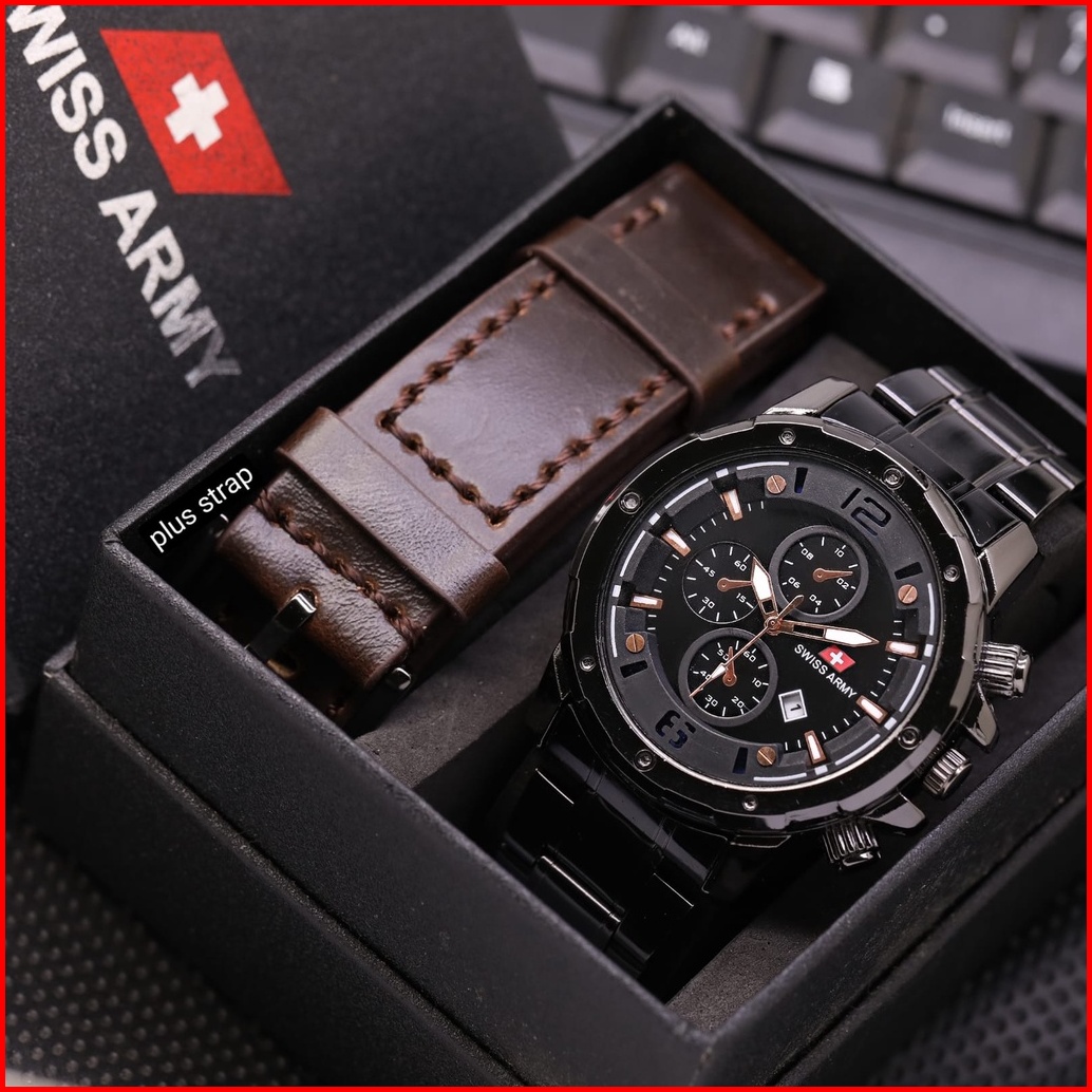 Promo Jam Tangan Pria Sw990 Army Kulit Tanggal Aktif Free Box Baterai Cadangan