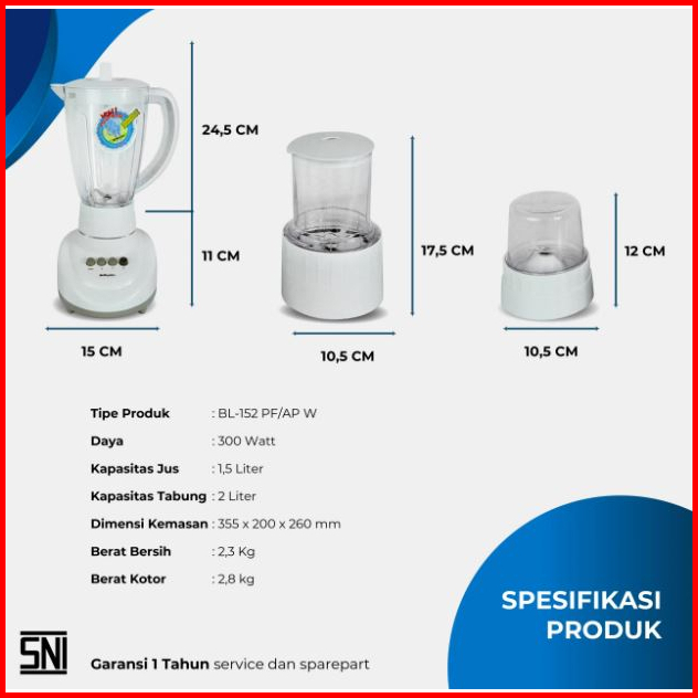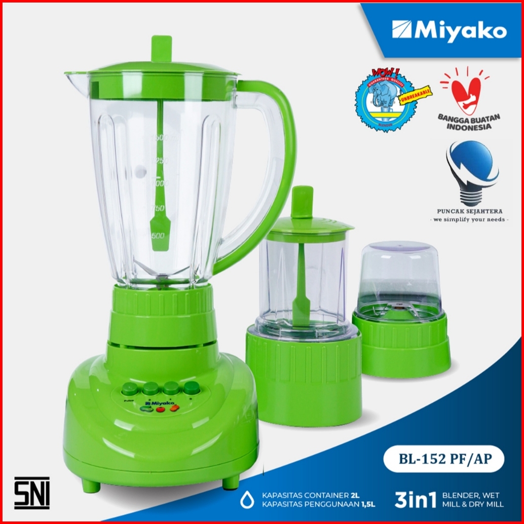 Blender Miyako Bl-152 Pf-ap 3 In 1 Dengan Wadah Plastik 1.5 Liter Garansi 1 Tahun