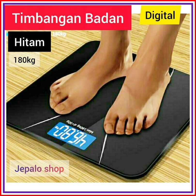 Timbangan Badan Digital Hitam 180kg 26x26 Black Polos Jepalo Shop Makassar
