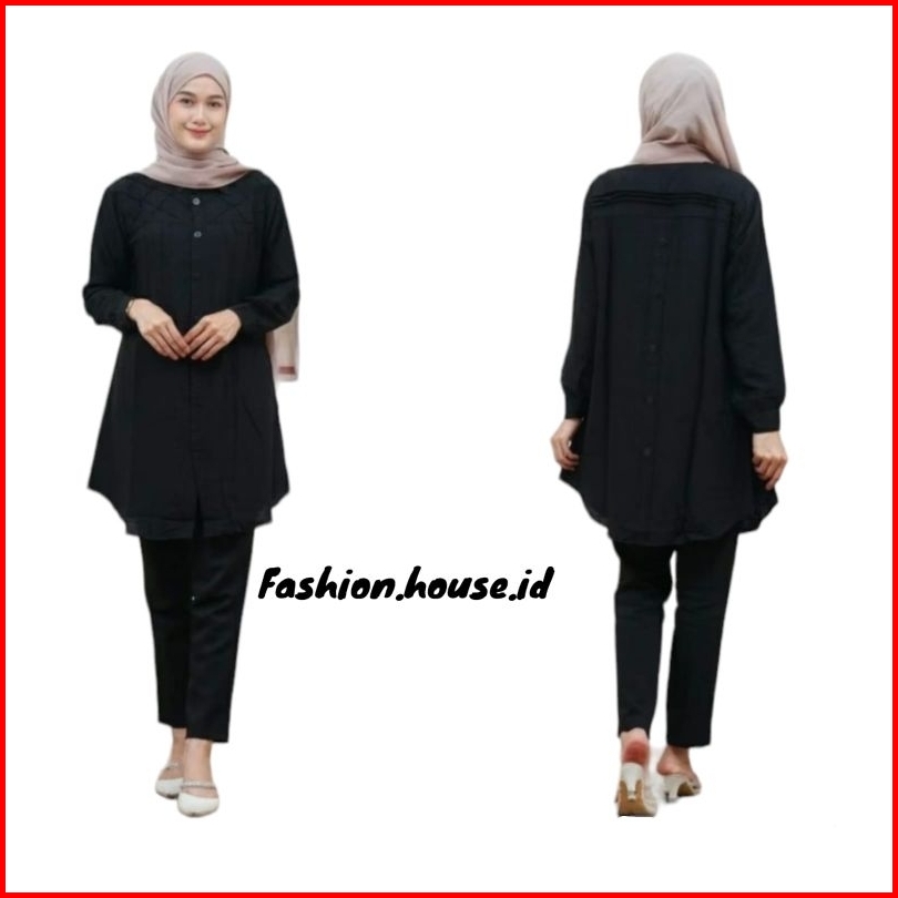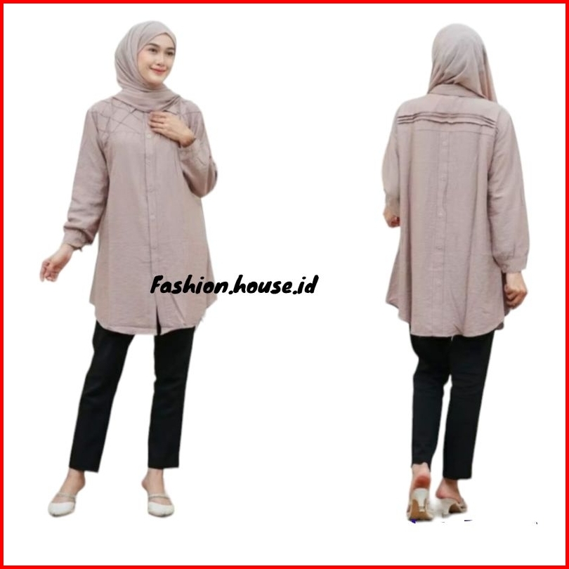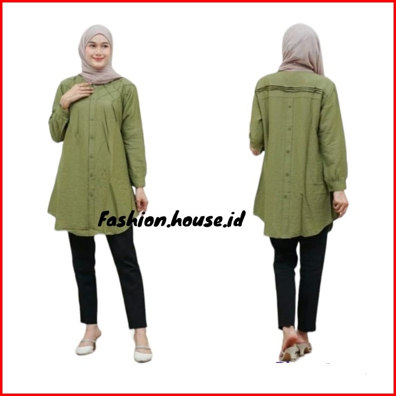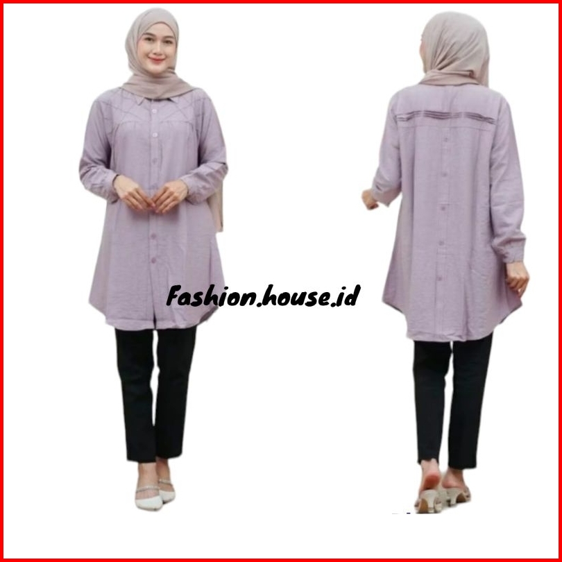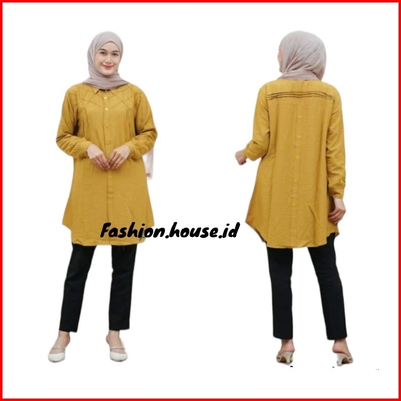 Yuna Tunik Remple Variasi Kotak-kotak Polo Linen Kancing Depan Belakang Kemeja Wanita Blouse Polos Polo Linen